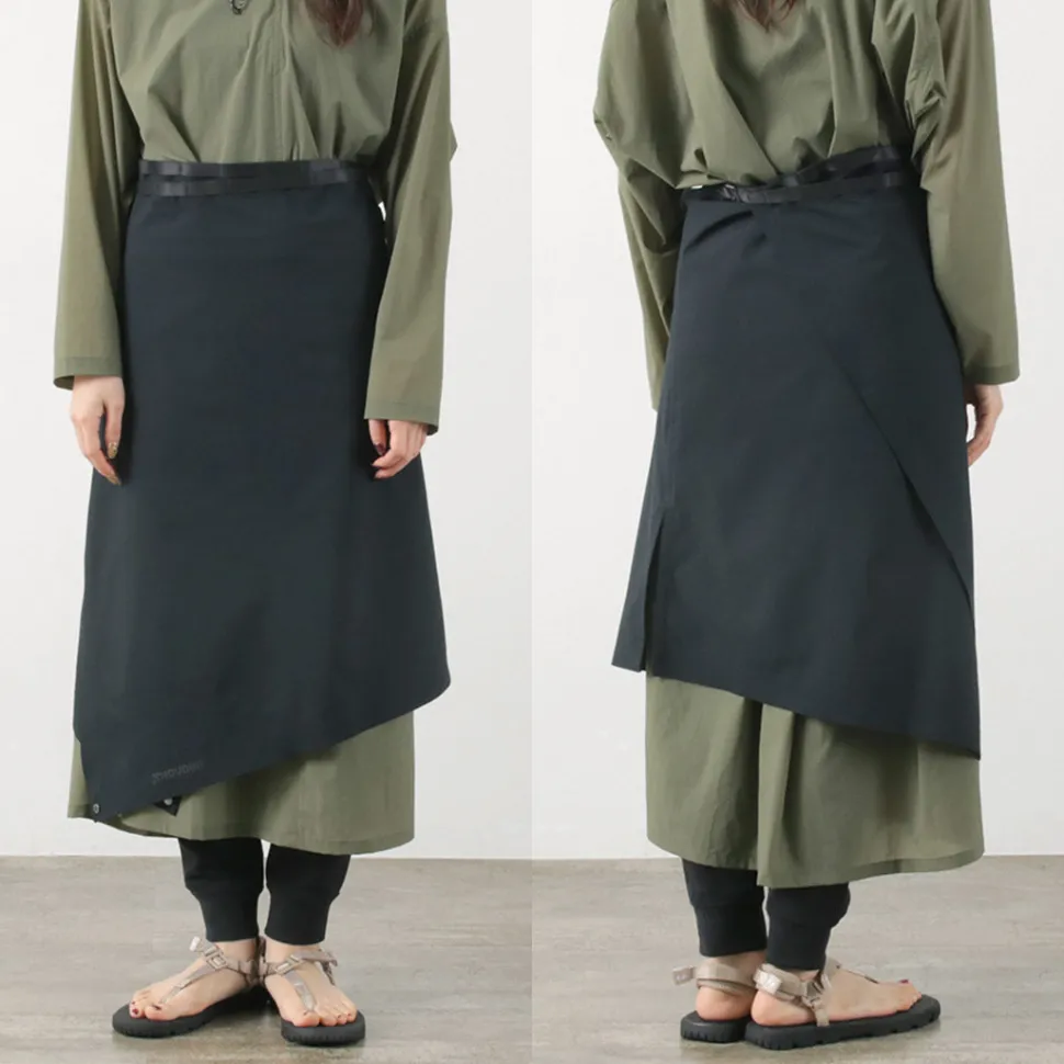 The wrap-around construction design can be worn wrapped over pants for easy on and off. This item is very useful in a wide range of situations, such as waiting for the bus on a rainy day or unexpected weather while out and about, by carrying it in a bag as well as in hard outdoor scenes.