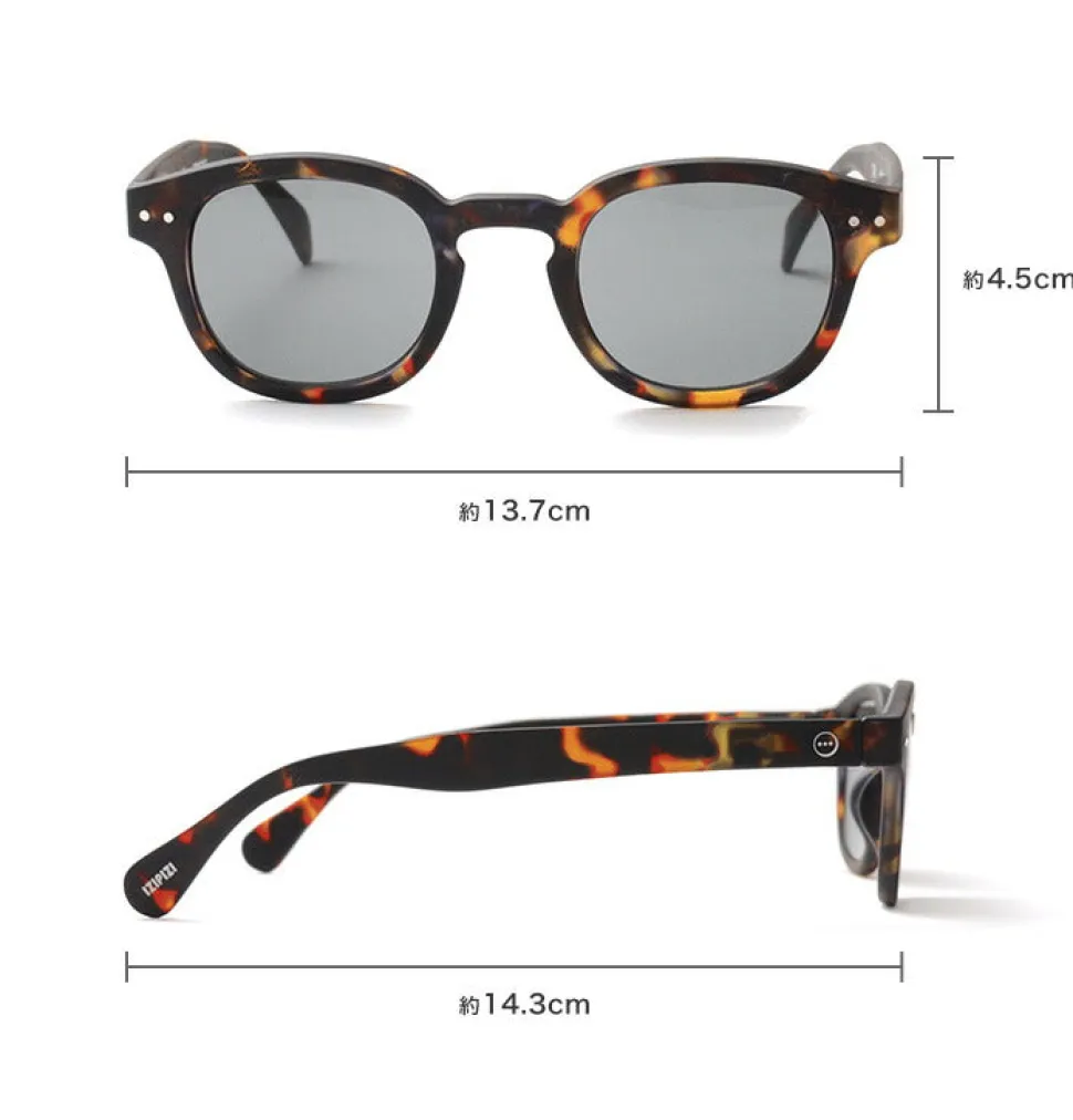 IZIPIZI is an up-and-coming brand of sunglasses born in France, which has been attracting attention for its fashionable design, lightweight comfort, and outstanding cost performance. The frame shape of “#C” is “Boslington”, an intermediate type between “Boston” and “Wellington”. The design of “#C” is “Boslington”, a type between “Boston” and “Wellington”, which is a fusion of the good points of both “Boston” with its roundness and “Wellington” with its classic trapezoidal shape, and suits Japanese people well. It is thicker and more voluminous than the brand’s “#D” and “#F”, and has a strong presence, but it does not look unrefined, and it naturally blends with any face shape. It is made of light and strong polycarbonate and has a flexible spring hinge.