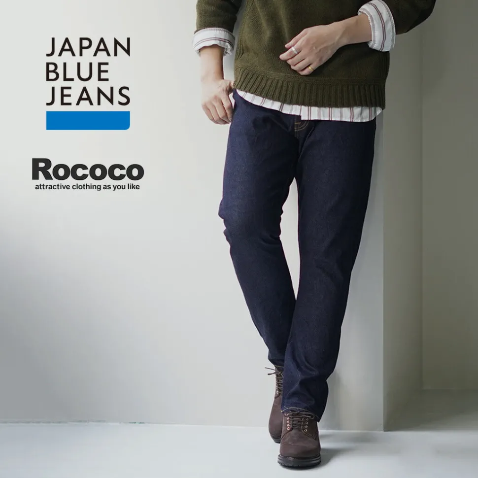 JAPAN BLUE’s classic “prep” selvage jeans with a deep inseam, tight thighs and knees, and a strong drawstring towards the hem. This is a special order model for ROCOCO using 12oz denim with a soft and supple texture.