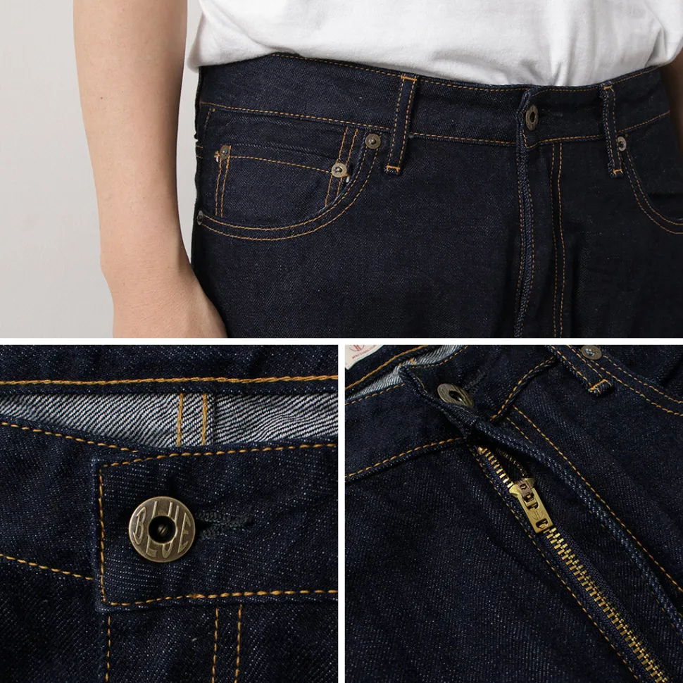 The front features a zipper for easy wear, and the jeans are equipped with JAPAN BLUE’s original zipper and donut buttons in a classic five-pocket style.