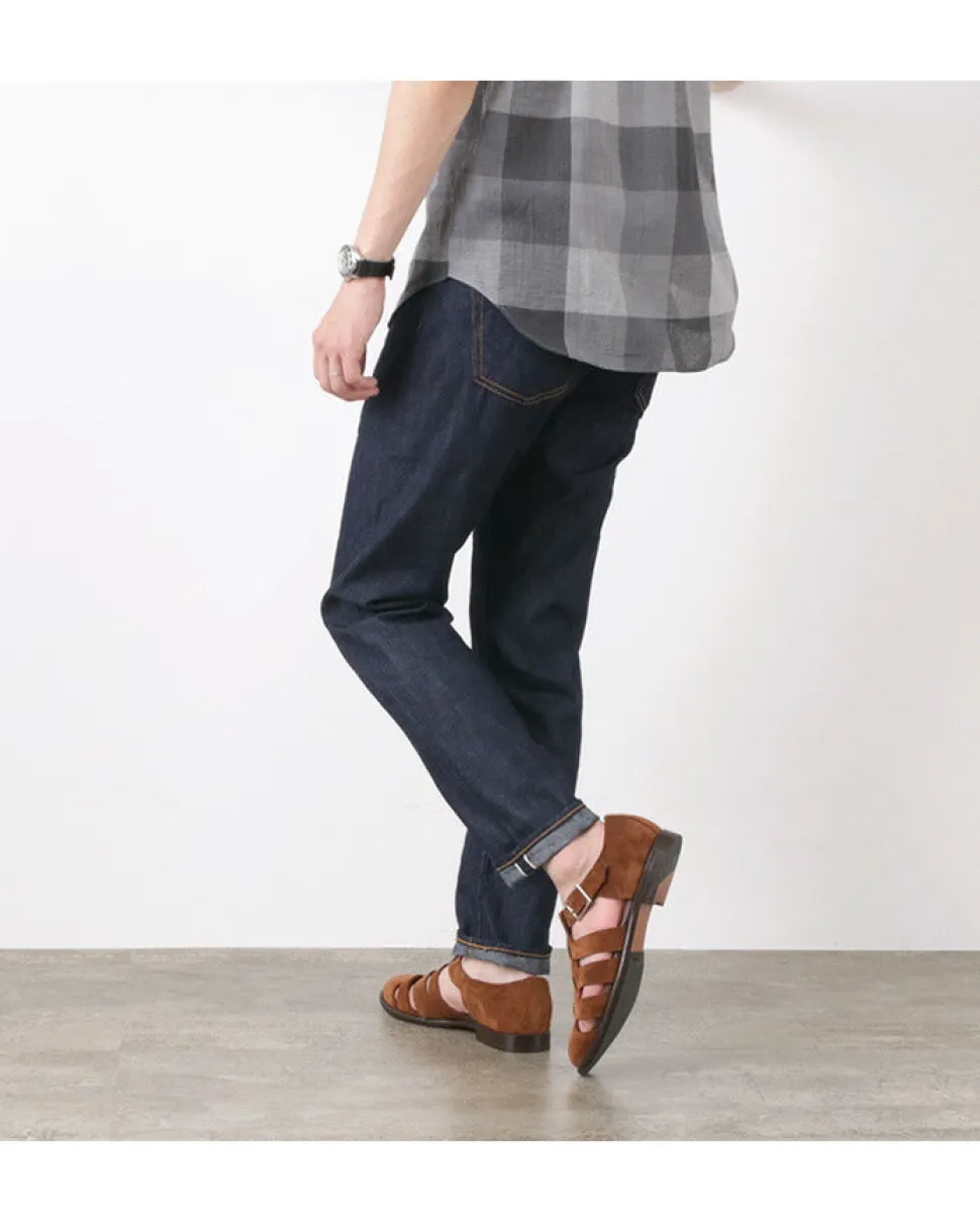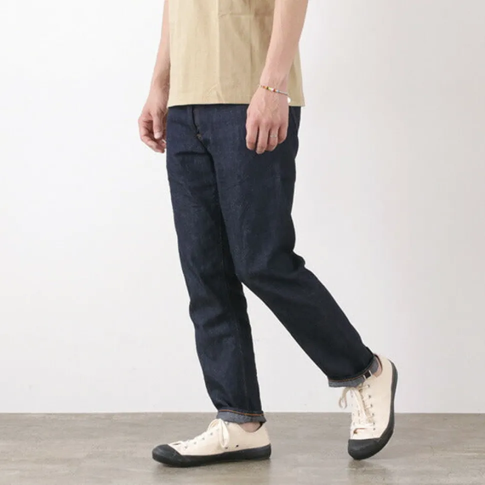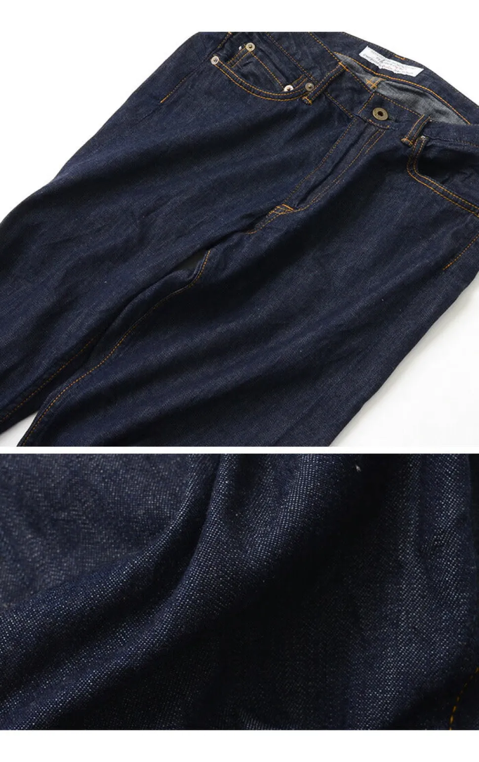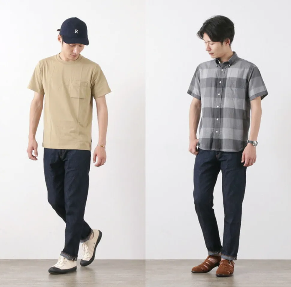 JAPAN BLUE’s classic denim jeans with a deep crotch, tighter thighs and knees and a tighter fit towards the hem. These jeans are made of 8oz summer denim and specially ordered by ROCOCO. The silhouette looks slim but is comfortable to wear. In addition to this, the denim has the look of real denim but is light and smooth to the touch, making it comfortable to wear even in the heat of summer.