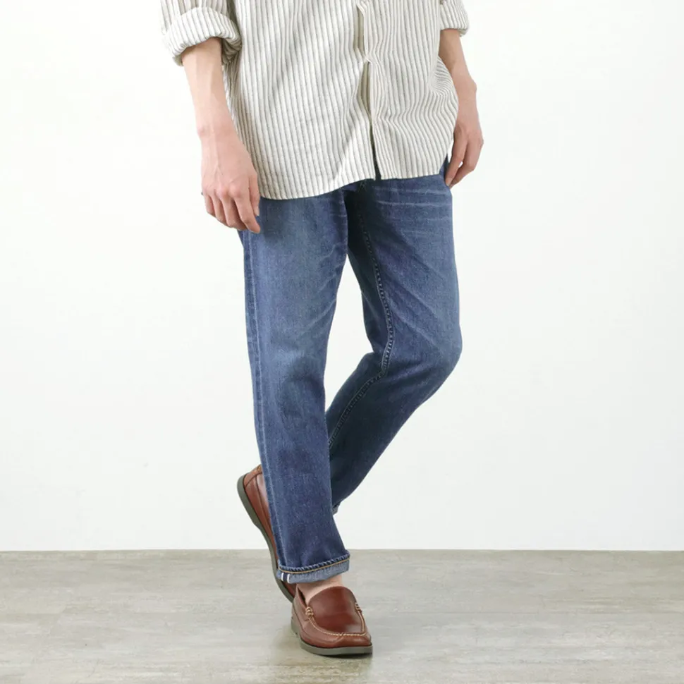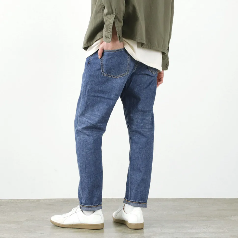 8oz fabric, which is relatively thin for a denim pant. Denim feels hot and heavy in the hot season, but this one can be worn smooth and light regardless of the season.
