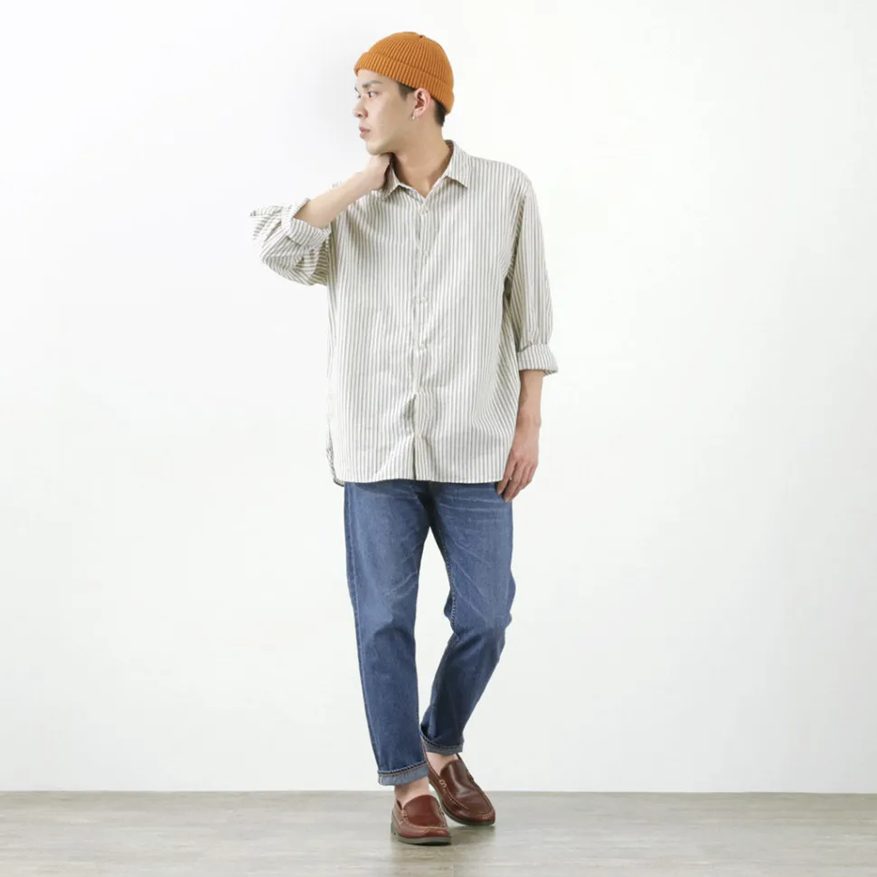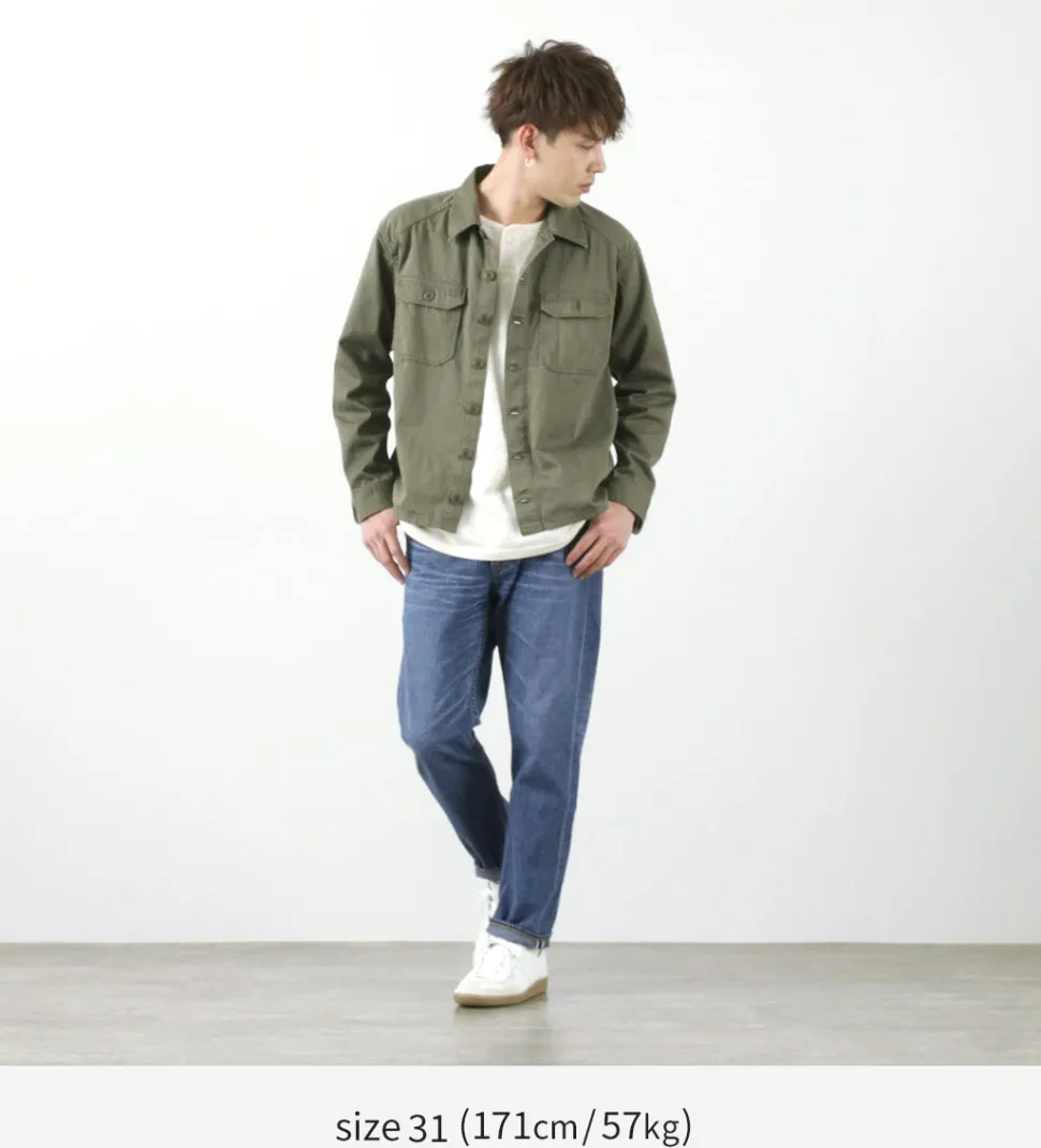 Also, the stitching uses the standard orange stitching of jeans, and when the hem is rolled up, the selvage, a proof of being woven on an old-style power loom, can be glimpsed.