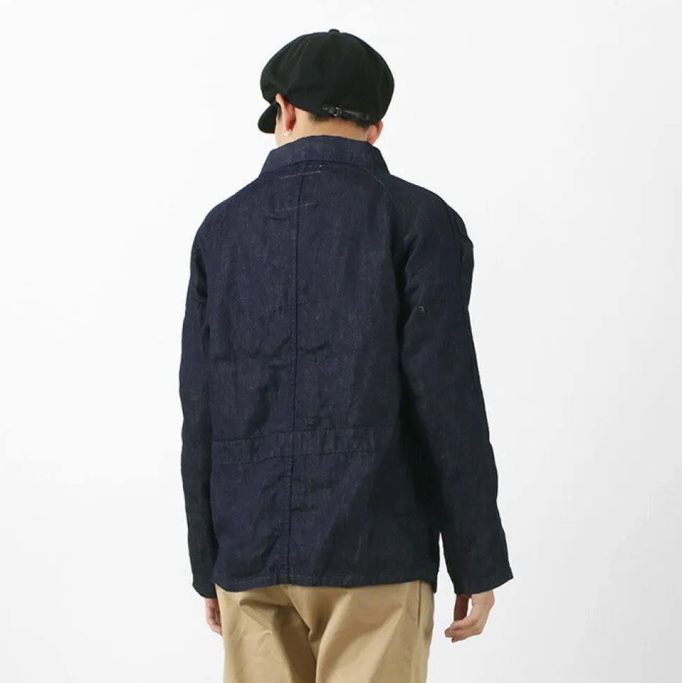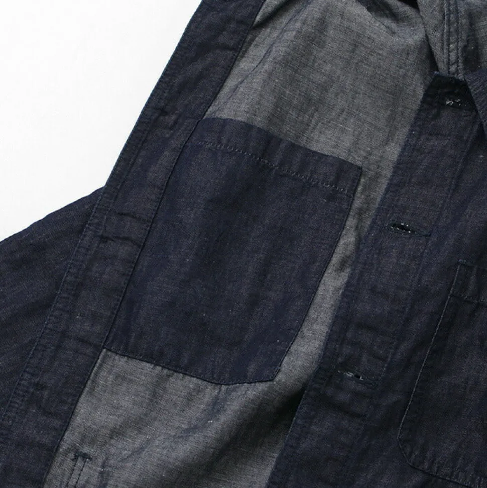 Based on a French work jacket, this piece is made of cotton linen denim fabric.