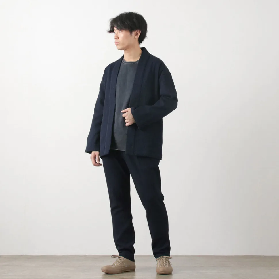 The fabric uses the brand’s original 11oz sashiko fabric with a moderate texture. Unlike typical heavy and stiff sashiko fabric, it is light and soft, making it easy to wear daily.