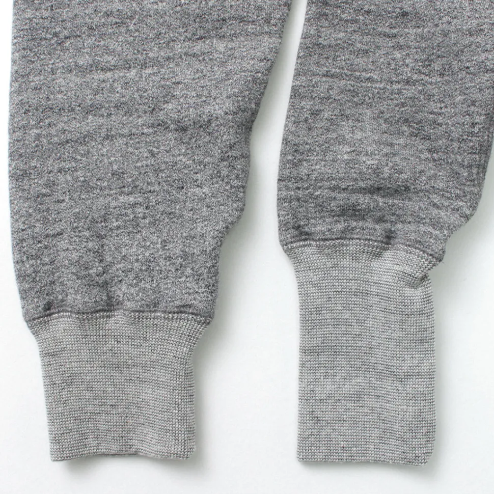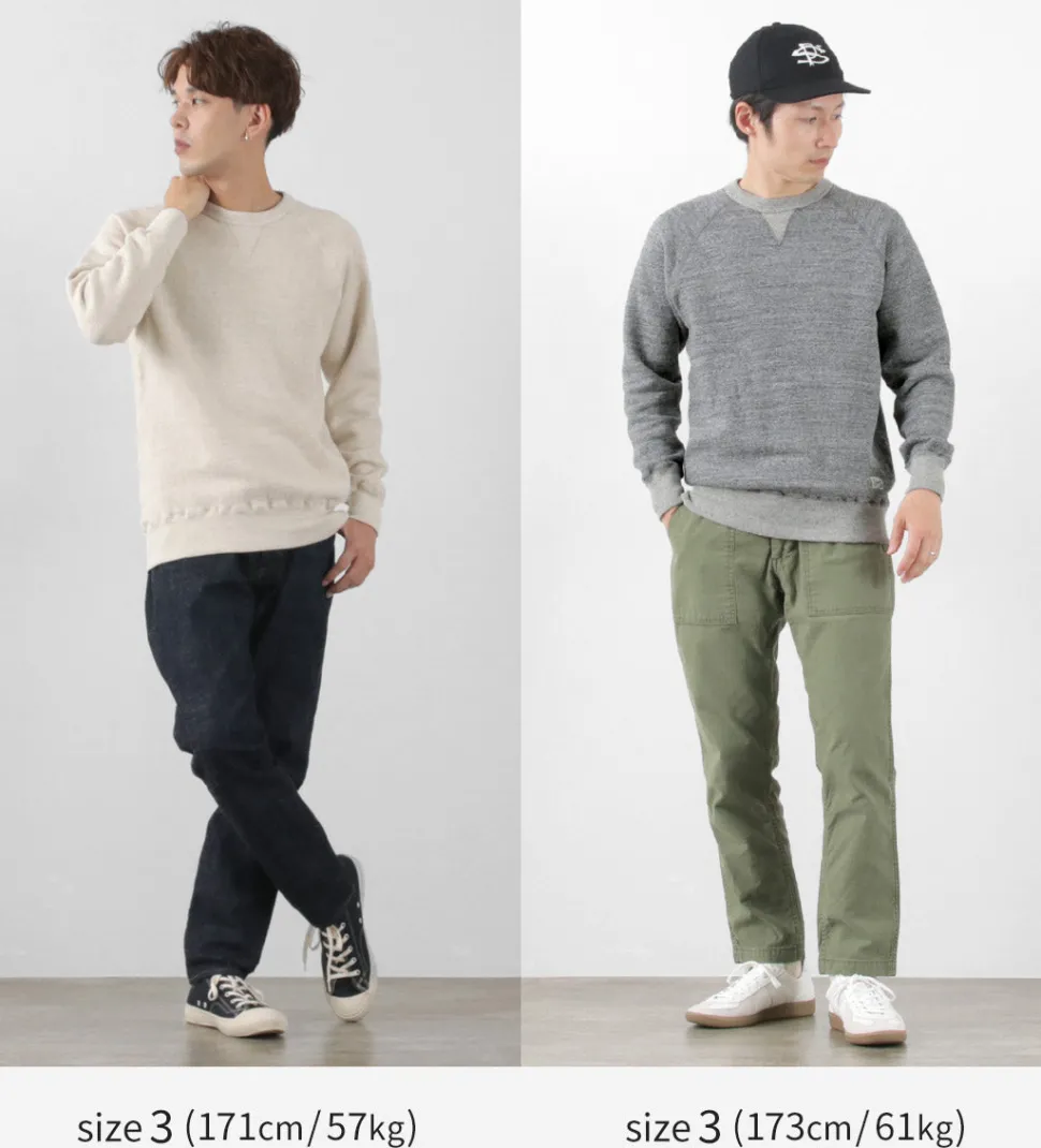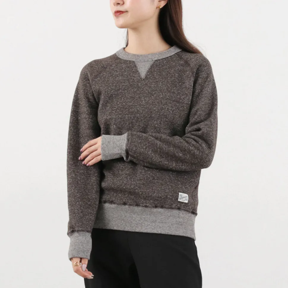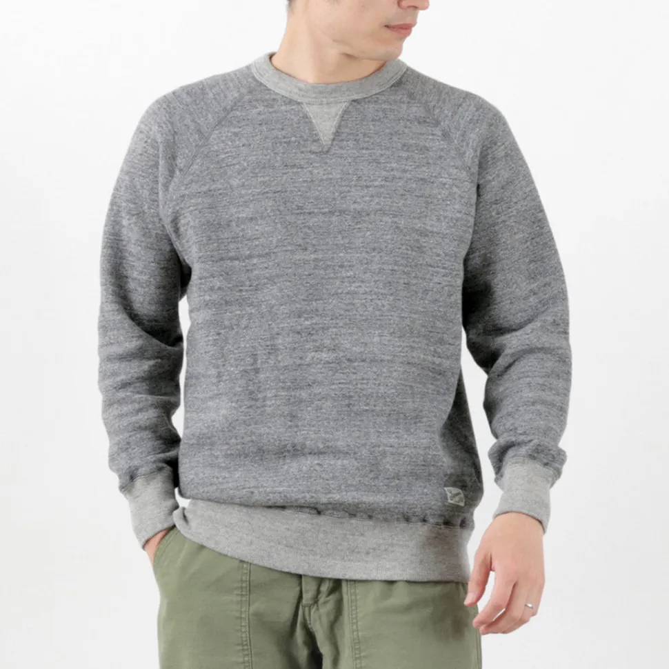 The design is based on vintage sweatshirts from the ’40s and ’50s with inset double-V gussets. The raglan sleeves, which were not widely used at the time, and the ribbed ribs between the legs give it a unique look.