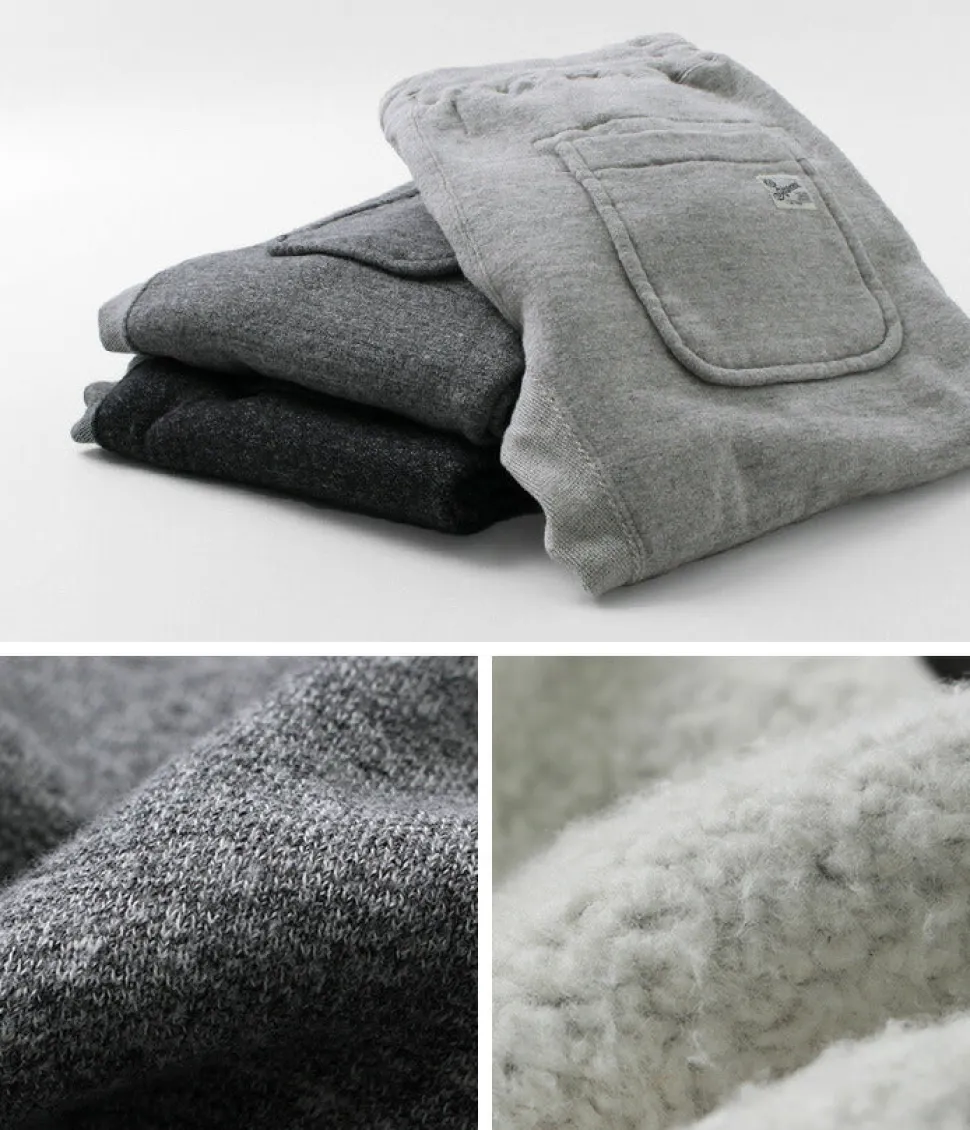 KEPANI sweatpants are now available with a thick, warm, and sleek silhouette. These sweatpants are made of a special raffia fabric knitted on an old-style sinker knitting machine.