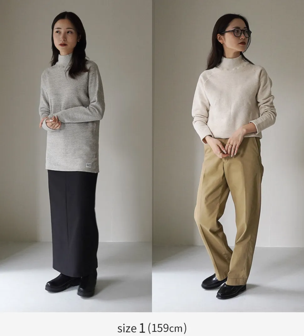 The Raffy brushed lining mock neck sweatshirt is synonymous with Kepani. The soft, chunky texture of the fabric makes this item extremely comfortable, and once you put it on, you will definitely become addicted to it.