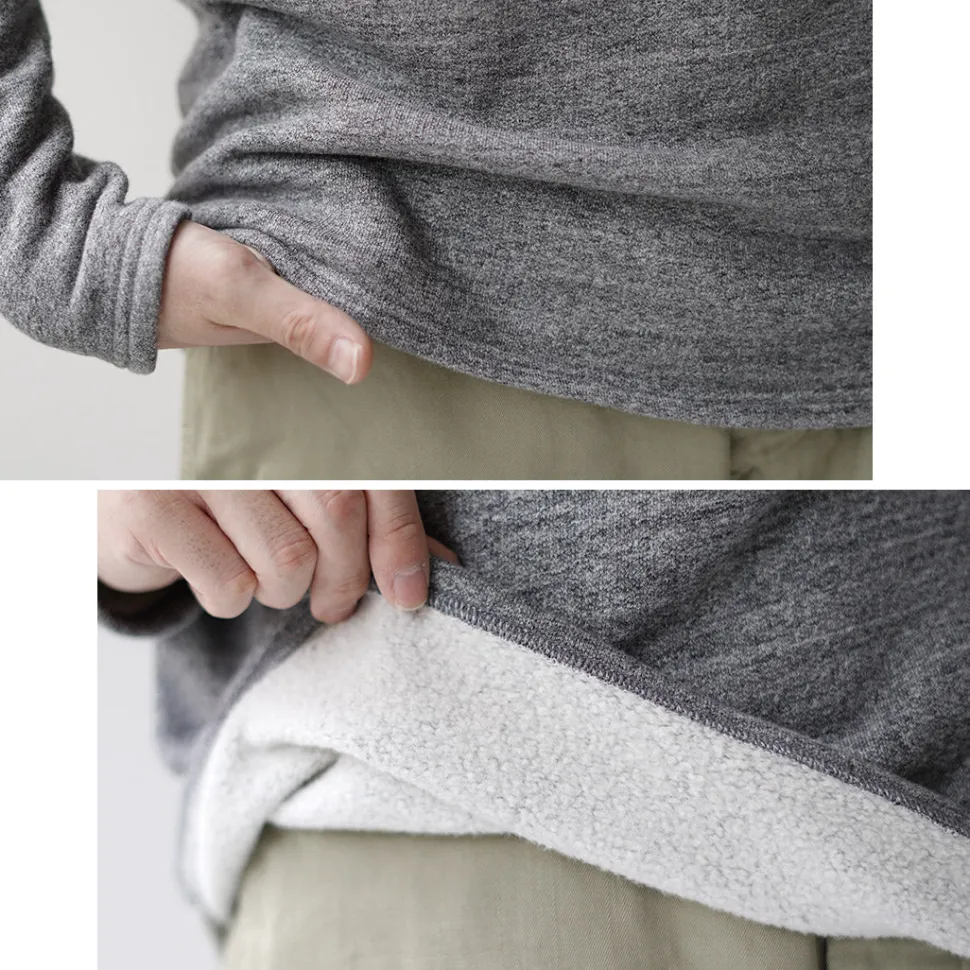 The mock neckline gives a sophisticated impression, so even though it is a sweatshirt, it does not look too casual and matches a wide range of styling. The inner lining will keep you warm even in the middle of winter.