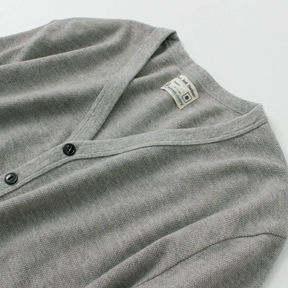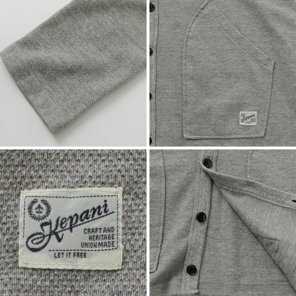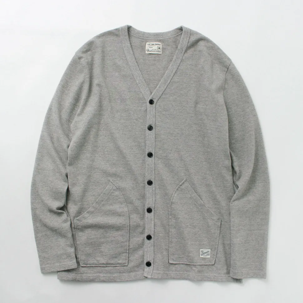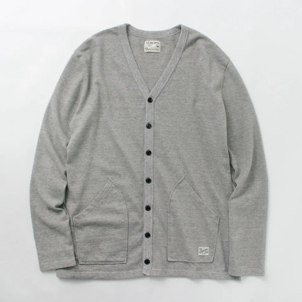 This cardigan is made of Kanoko(Pique) fabric, which is characterized by its strong unevenness and dry touch against the skin. The fabric has a strong, uneven texture and has a dry feel against the skin.