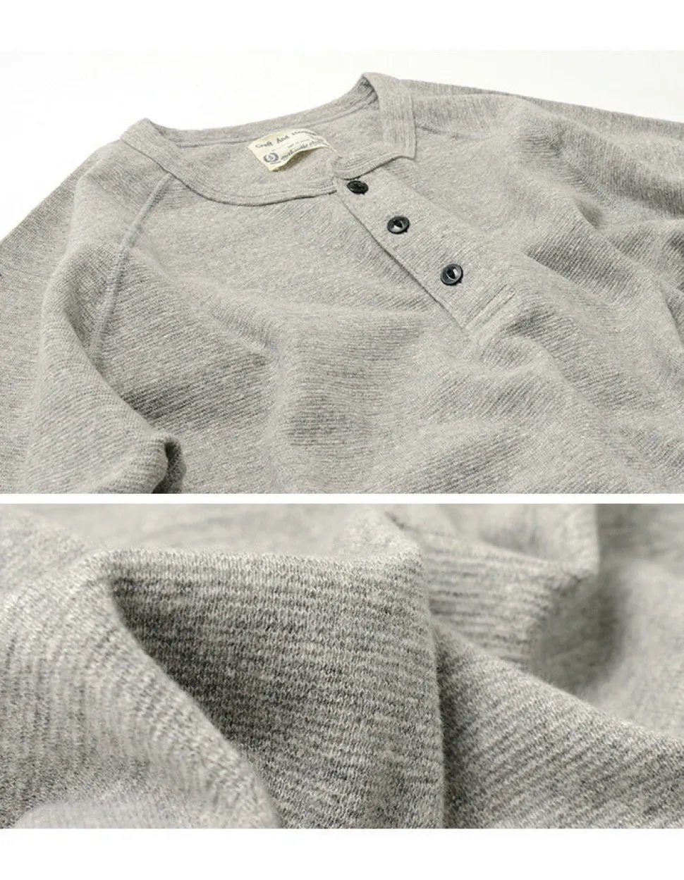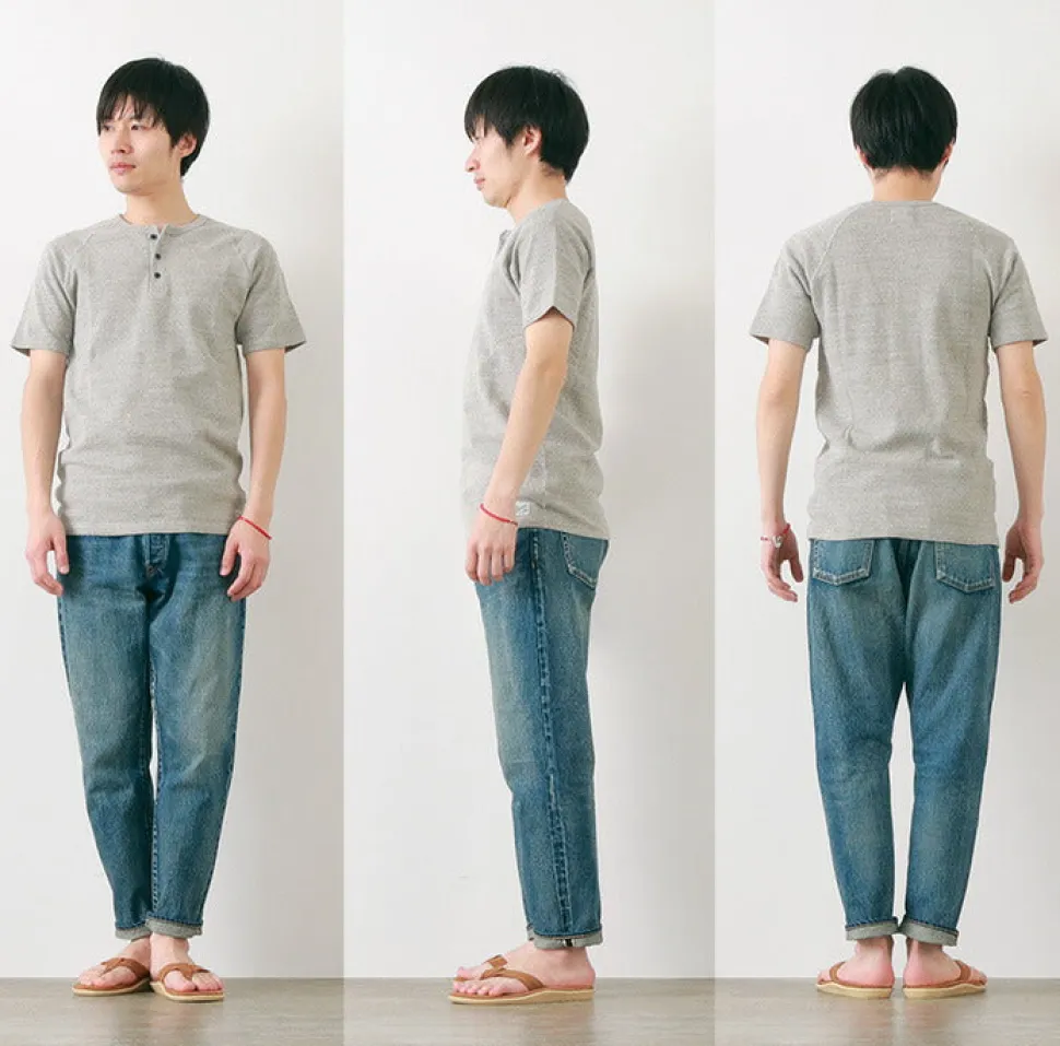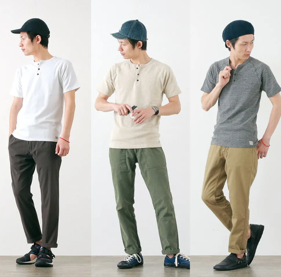 The KEPANI standard milling t-shirt, which has been loved for many years for both short and long sleeves, is now available in a henley neck version. The reason for its popularity is the comfortable fit created by the high elasticity of the Raffy spun milling fabric, which is spun with mixed raffy yarn and stretch yarn in the weft direction. From the choice of material to the sewing, comfort is their top priority.