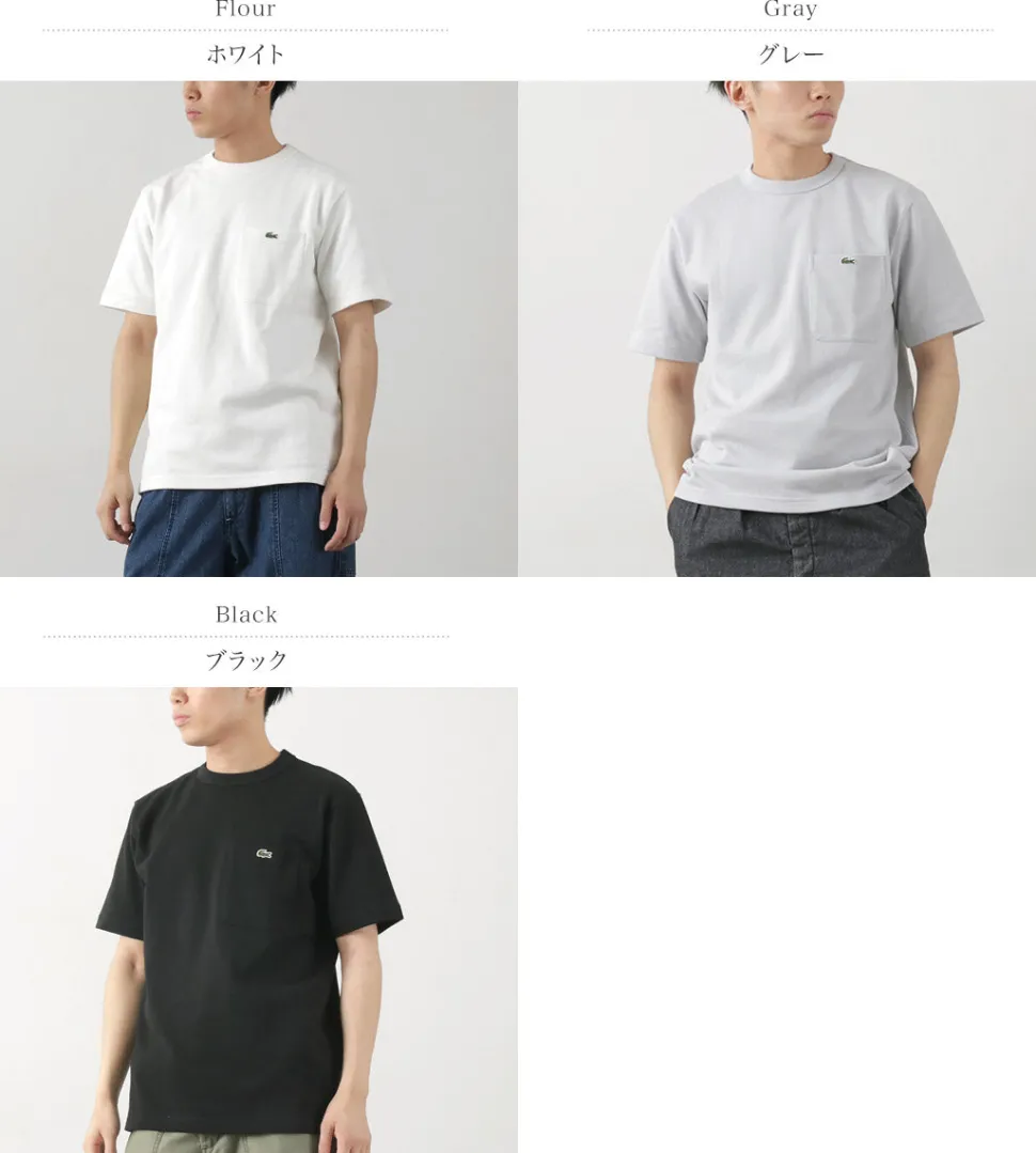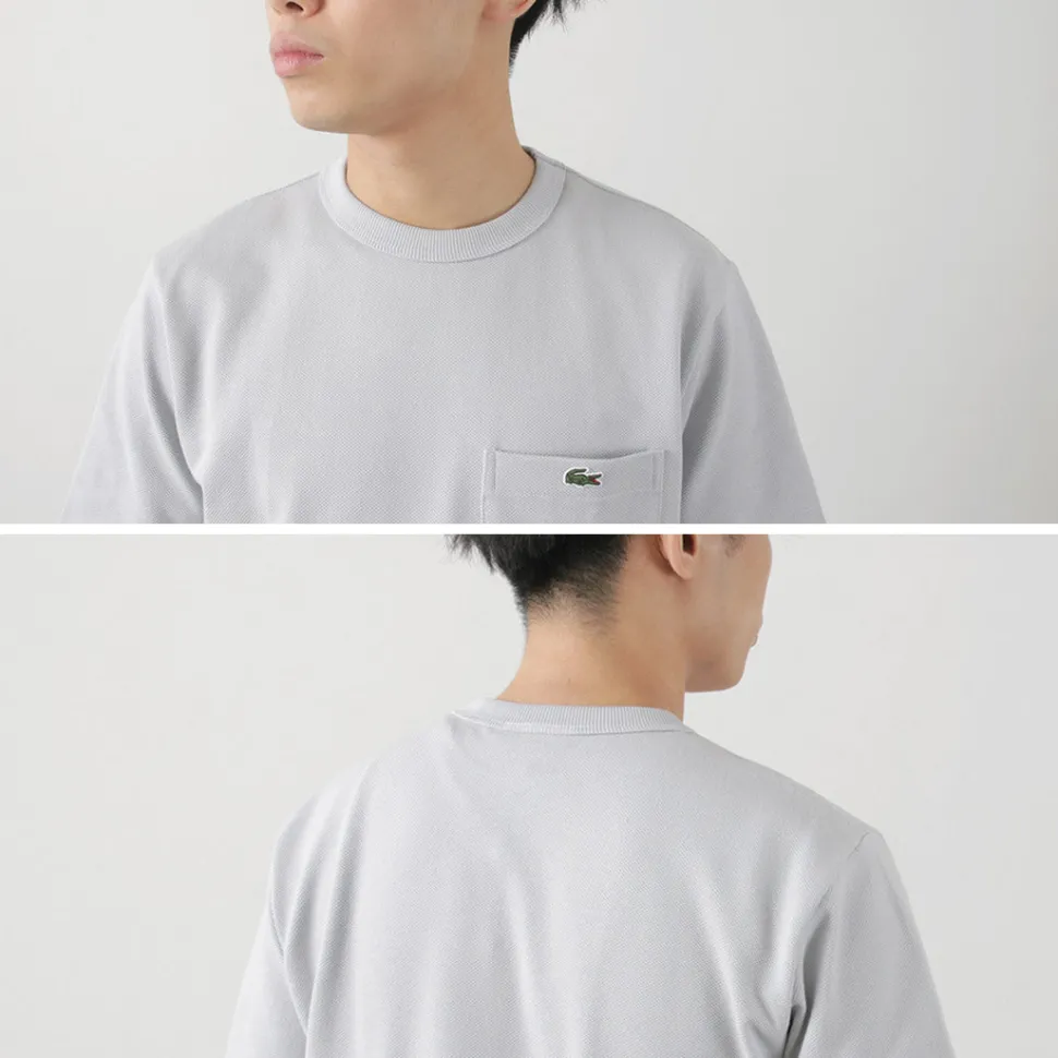 LACOSTE introduces a crew-neck T-shirt with a patch pocket featuring a clock emblem on the left chest. The basic appearance of this T-shirt is simple, but the use of Lacoste’s typical pique fabric, the classic fit silhouette with a moderate amount of room, and the duck tail with a longer back body give this piece a brand-like appearance.