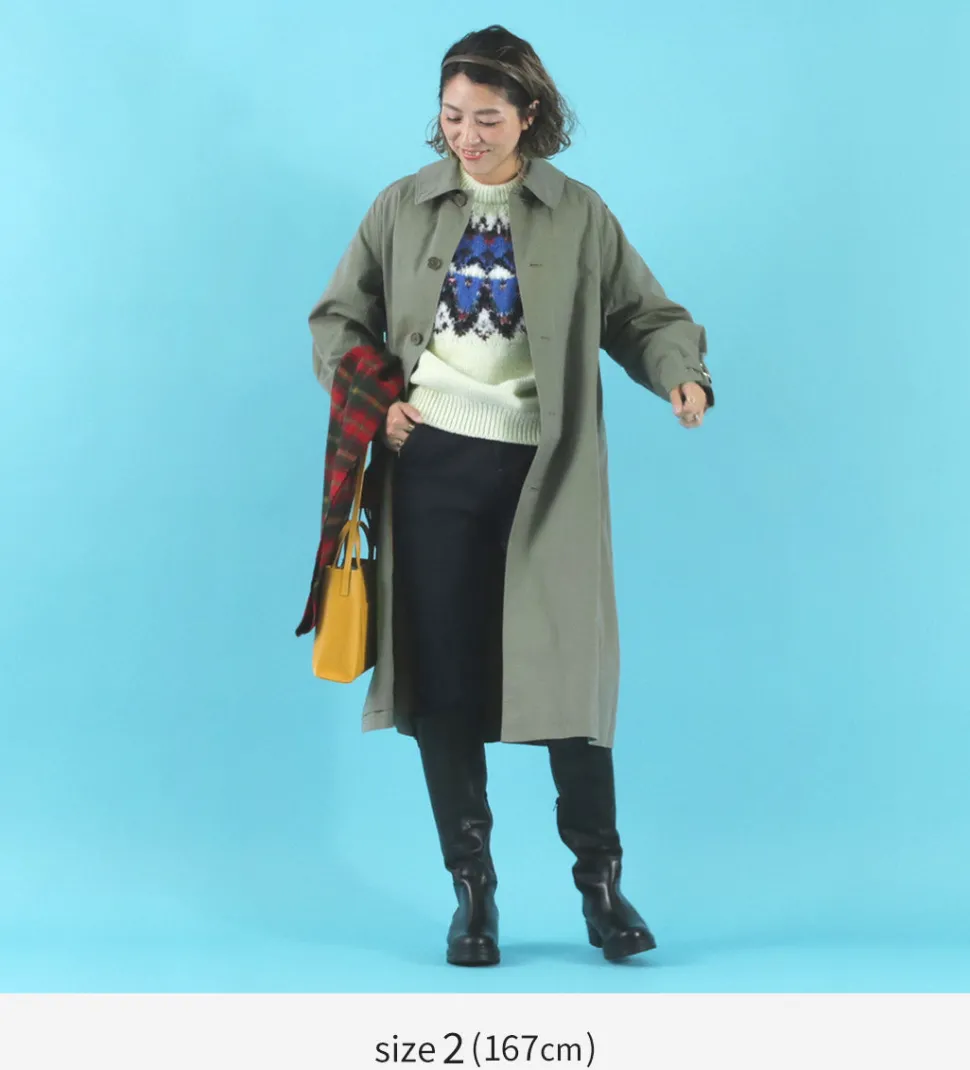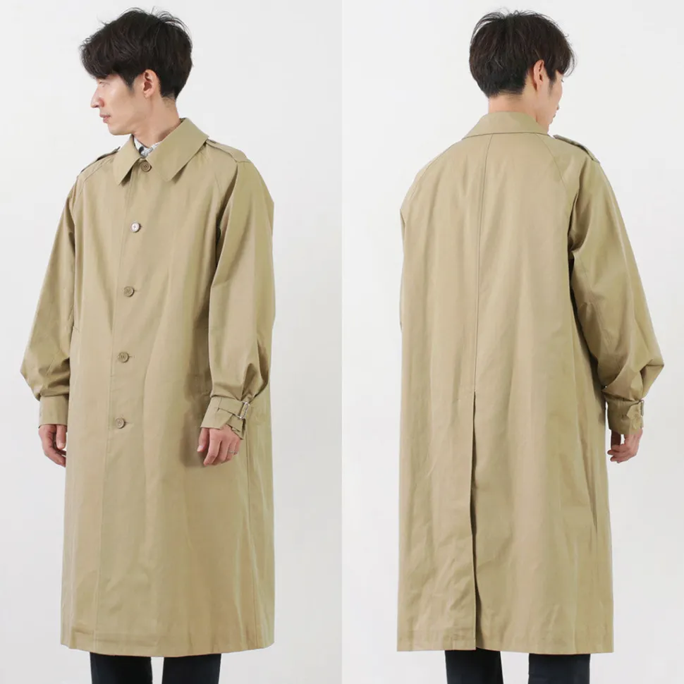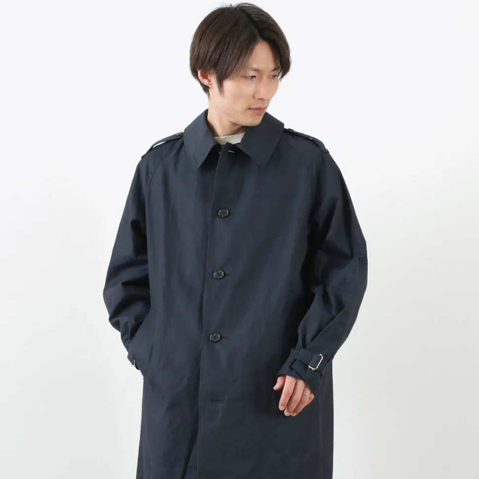 A coat with an overall loose, oversized fit. The raglan sleeves reduce the horizontal spread and give it a sleek appearance. The long length creates an elegant mood just by throwing it on. It is also lightweight despite its appearance and can be worn comfortably from autumn to spring.