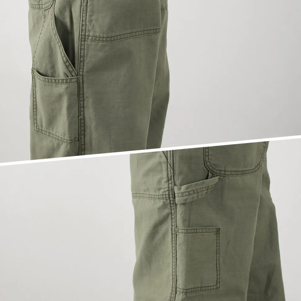 Large hip pockets and hammer loop and scale pockets on the sides, typical features of painter pants, are also included.