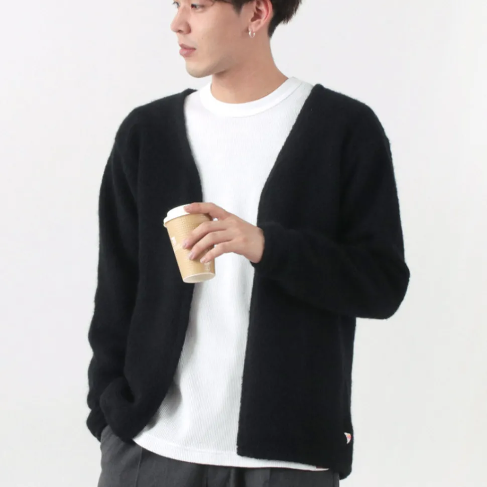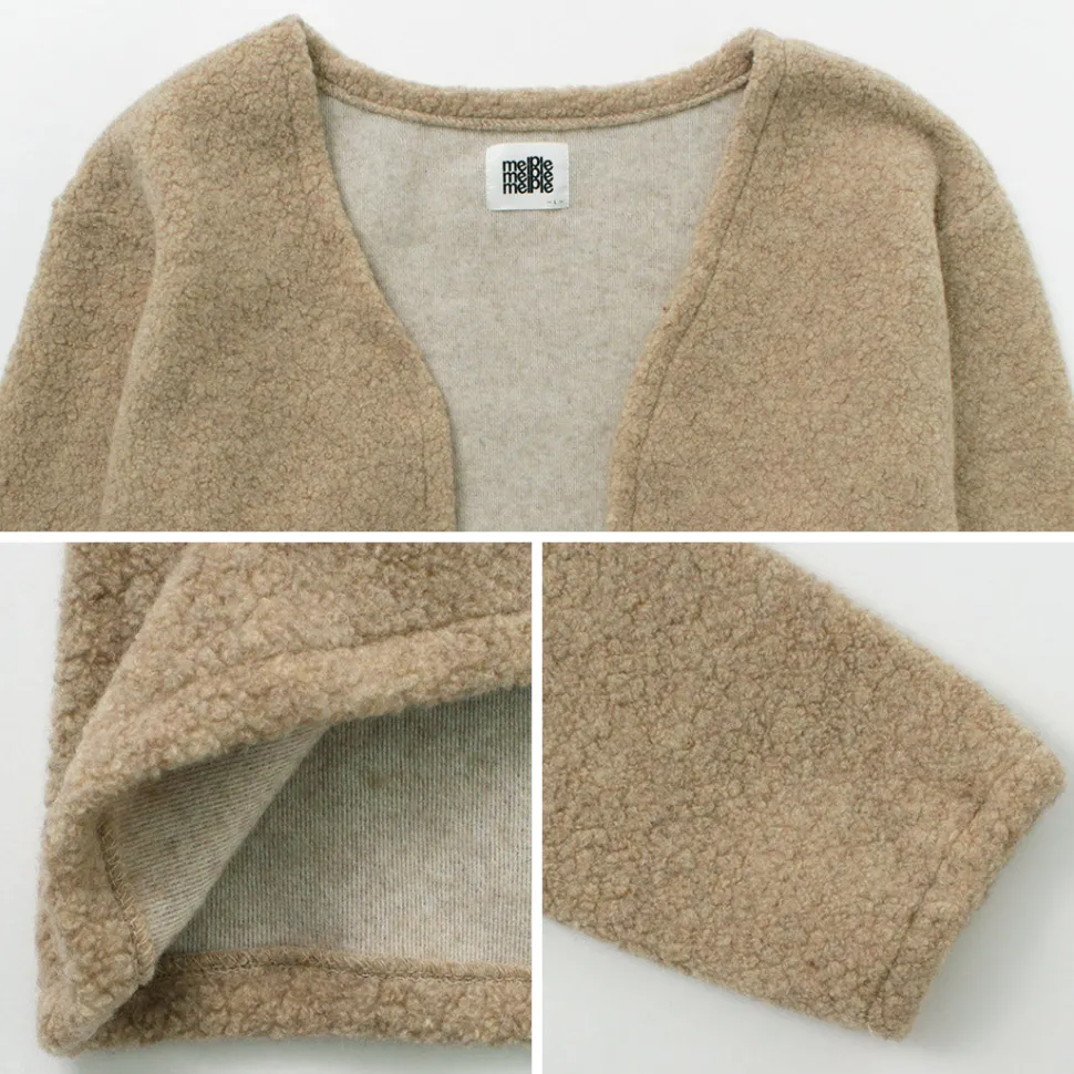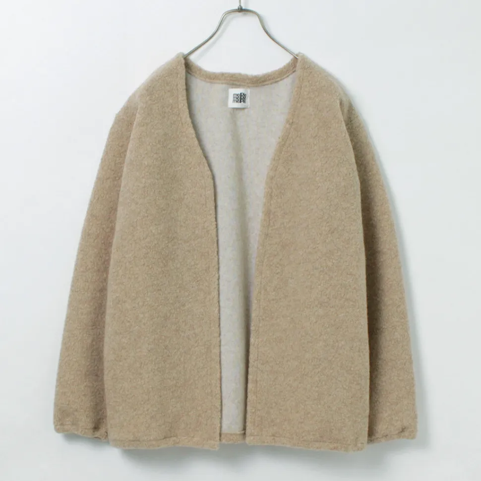 This is a piece of MELPLE’s popular bolero cardigan made into an autumn/winter version. The warm wool and angora blend fabric is used to provide a high level of heat retention. The bolero design with no buttons on the front allows for easy on and off. It is also useful for adjusting to small differences in temperature between indoors and outdoors. The minimal design makes it easy to match with other items.