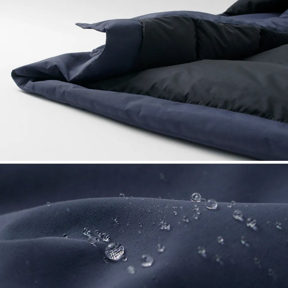 The fabric is made of GORE-TEX WINDSTOPPER fabric 70D nylon 2L. It is lightweight, water resistant, moisture permeable, and highly windproof. In addition, the down inside provides excellent heat retention. It protects you from strong winds and rain and provides comfort even in harsh weather conditions.