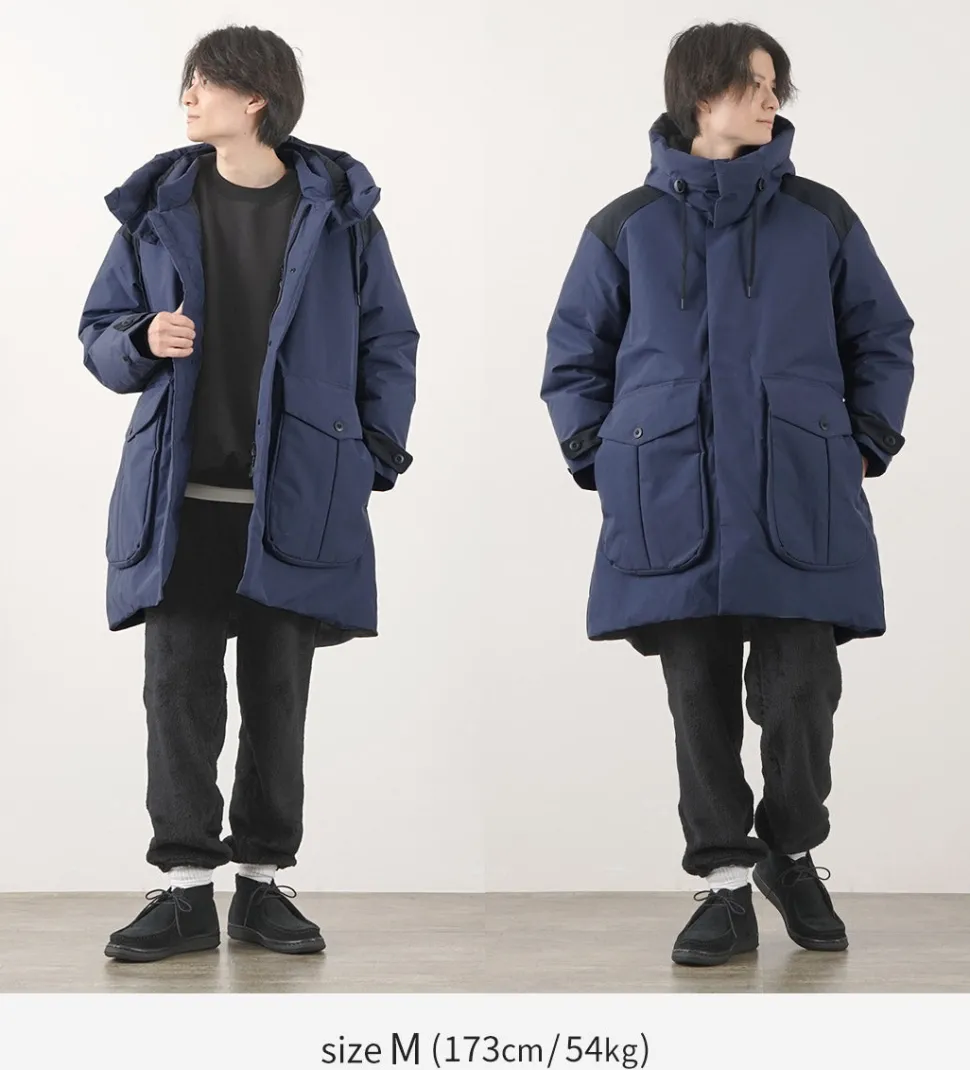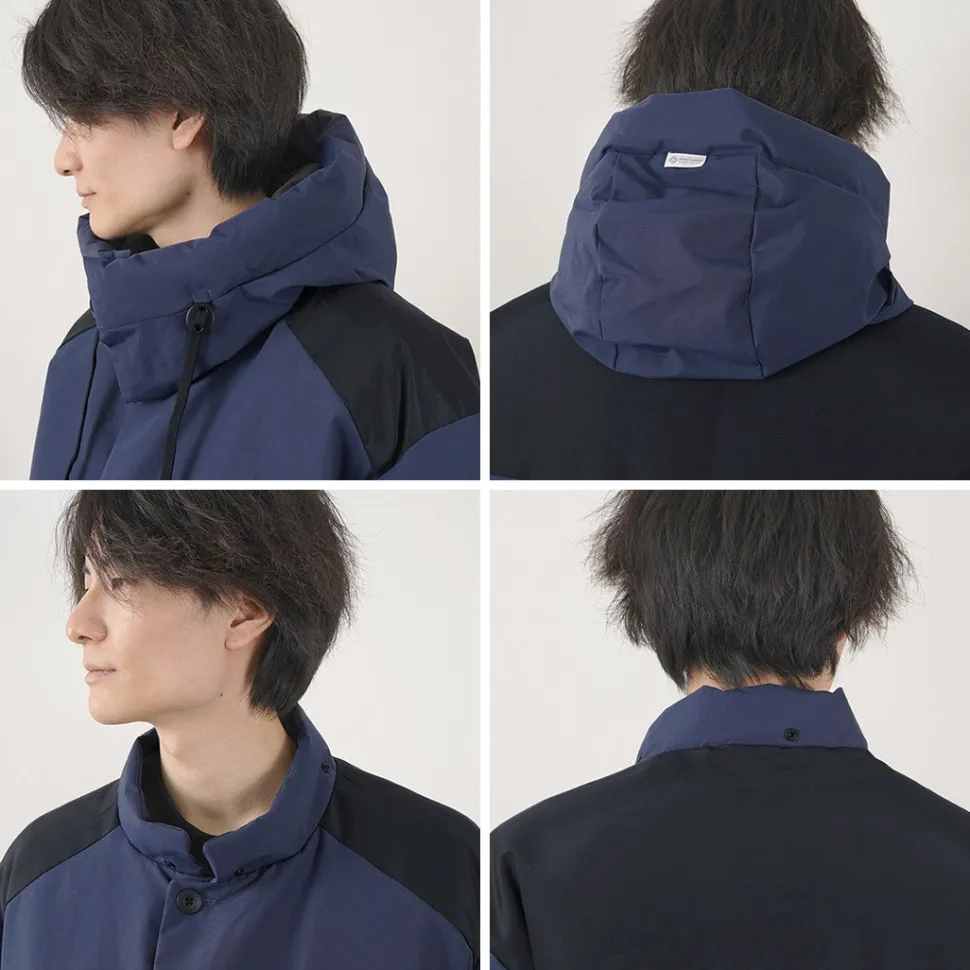 A relaxed silhouette with plenty of room. The design has no visible down seams on the outside, giving it an elegant impression despite being a down coat. From outdoor use to town use, to business scenes with the hood removed, this is a piece that can be used in all kinds of situations.