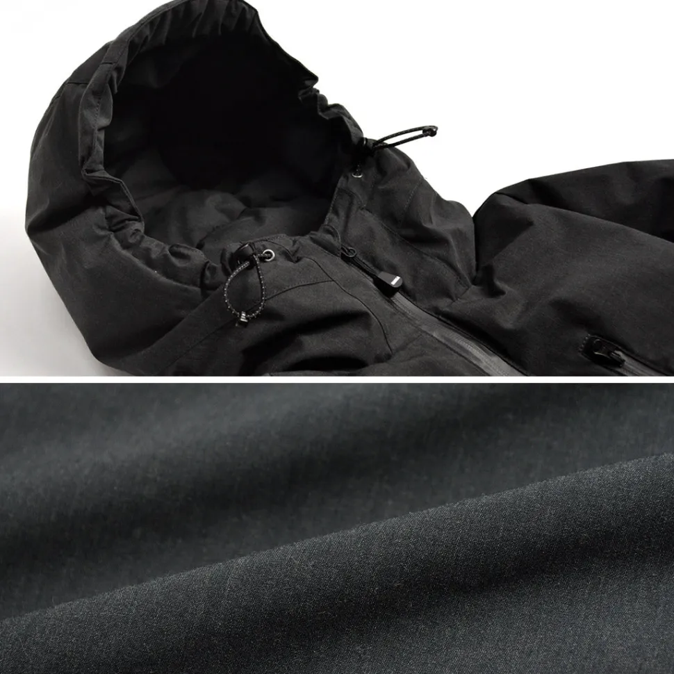 The standard Aurora Down uses 150g of down, but this special-order model uses 140g. Since HINOC fabric is stiffer than Aurora-Tex, adjusting the down to 140g achieves a moderate loft and the same insulation level. By fine-tuning the down quantity, NANGA maintains both visual balance and insulating power.