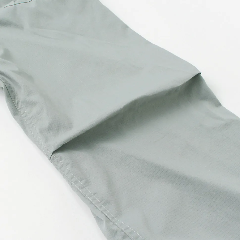 While simple and minimalist in design, this item also has practicality, following designs that can be adopted in the military, such as tucks at the knees and a front placket with snap buttons.