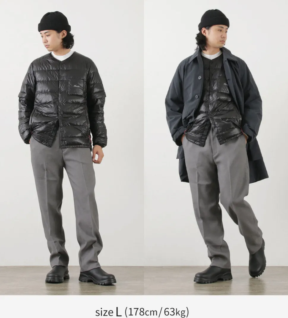Minimal and practical looks that can be used as inner down or as a single piece of outerwear. The well-balanced silhouette of the body width and length is ideal for a wide range of uses, from outdoor activities to town use.