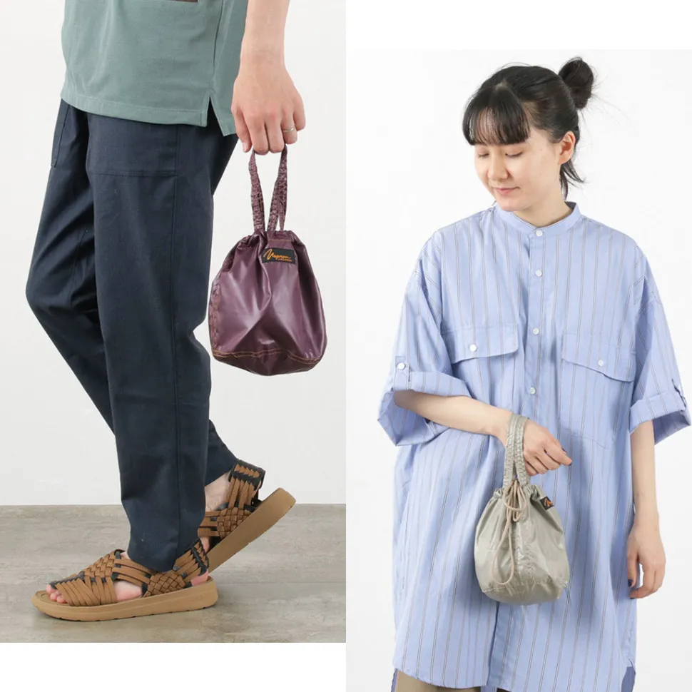 This drawstring bag is tailored by adding a handle to the USA Military “Patient Effects Bag” that was made from the 60s to the 90s.