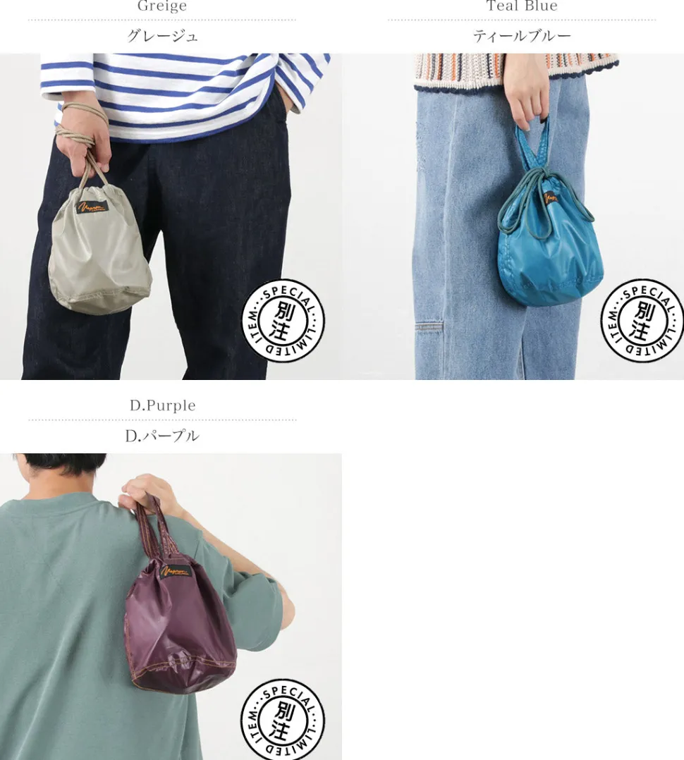 Hold the drawstring part over your shoulder or, on days with a lot of luggage, hold the handle part without squeezing the mouth. The bag can be changed according to capacity, for example, when you have a lot of luggage.
