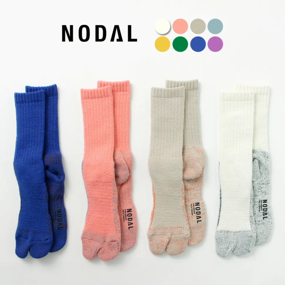 NODAL is a Japanese sock brand specializing in tabi-style socks, produced by Tamai Shouten, a long-standing tabi manufacturer founded in 1889. The name NODAL represents the point where things intersect, and it conveys the knowledge and quality cultivated in tabi production to the world of fashion and sports.