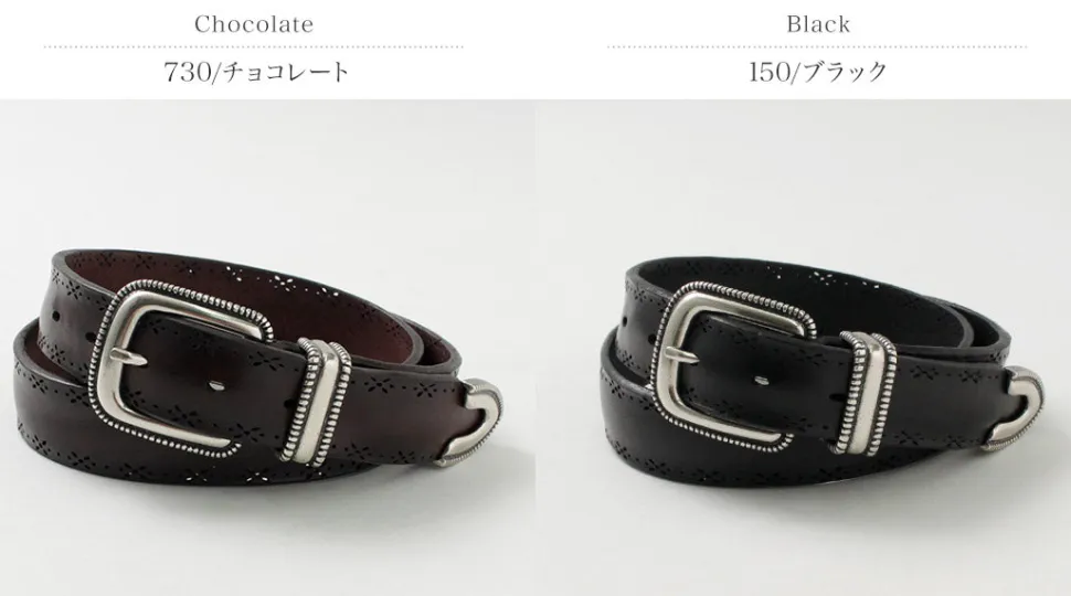 The buckle is decorative and heavy. The fine engraving on metal parts such as loops and sword tips, as well as the perforated pattern on the edge of the belt, are all made to stand out for their delicacy.