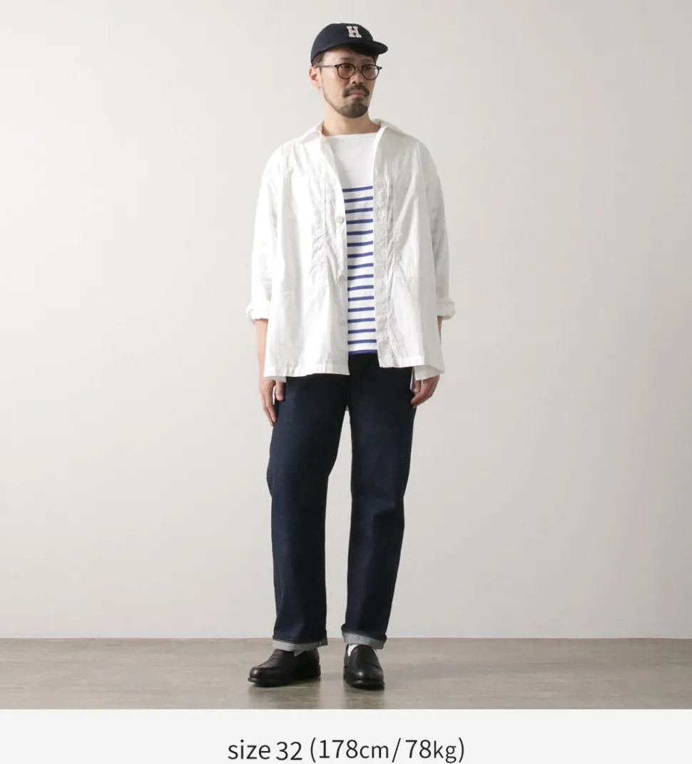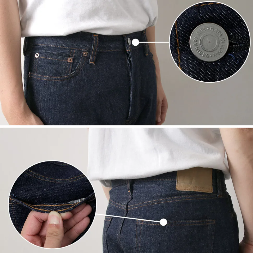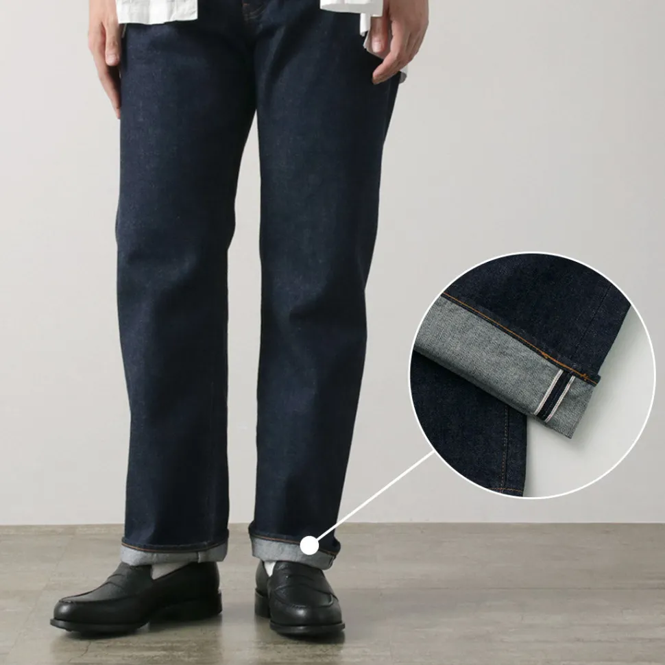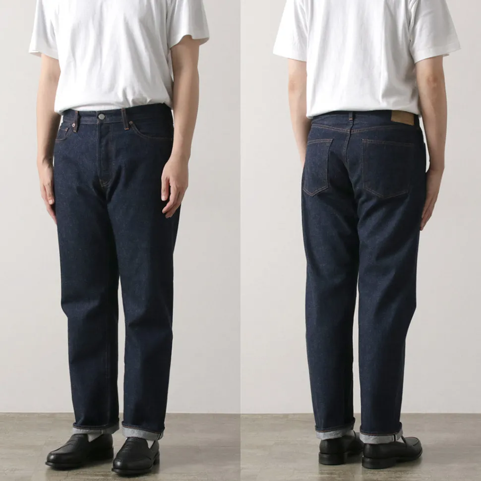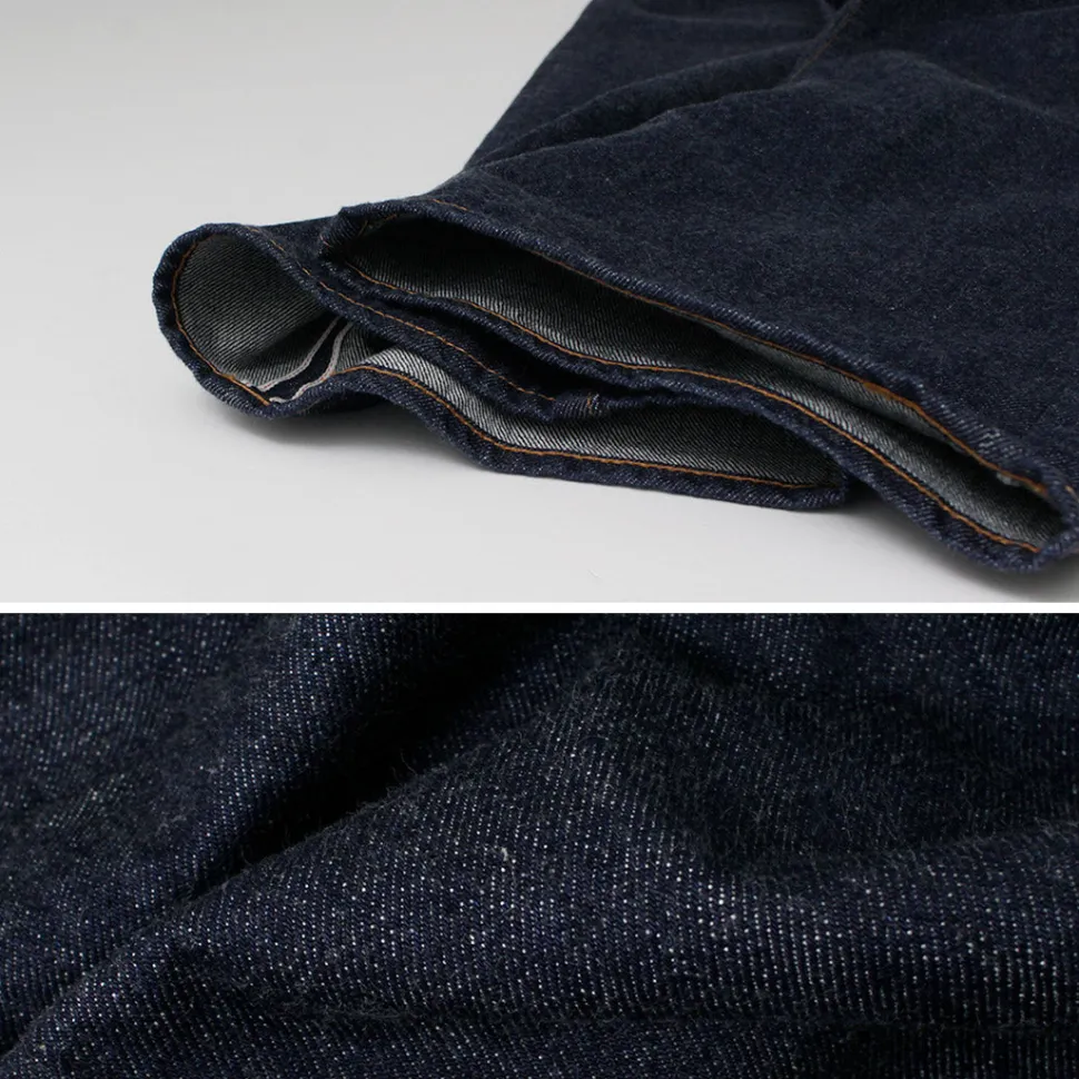 Made from 14oz selvedge denim that can be used year-round. It recreates the natural unevenness of vintage denim and avoids processes like singeing and skewing to retain the authentic vintage feel.