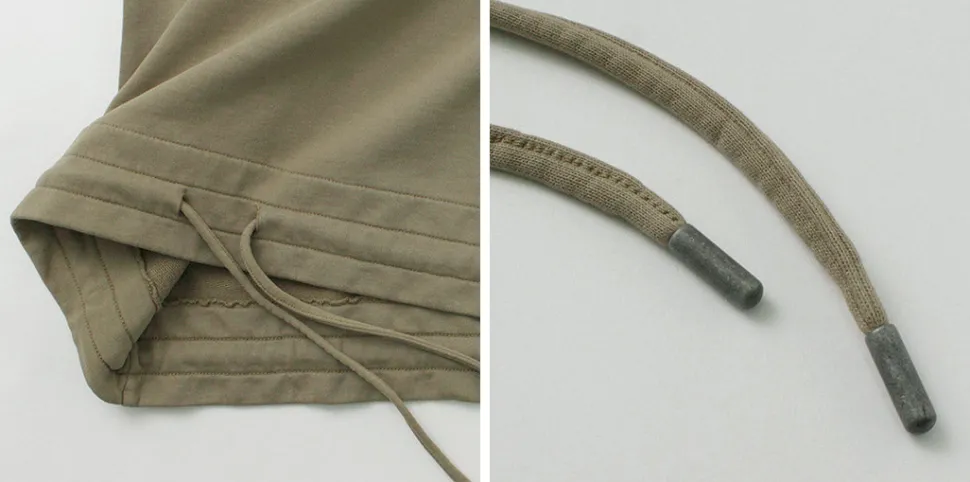 It features a dense sweat fabric. While it has the heaviness typical of heavyweight sweatshirts, it has a light and comfortable feel by reducing thickness. The back uses French terry fabric with looped threads like a towel, which has excellent water absorption and a good feel, making it easy to move in.