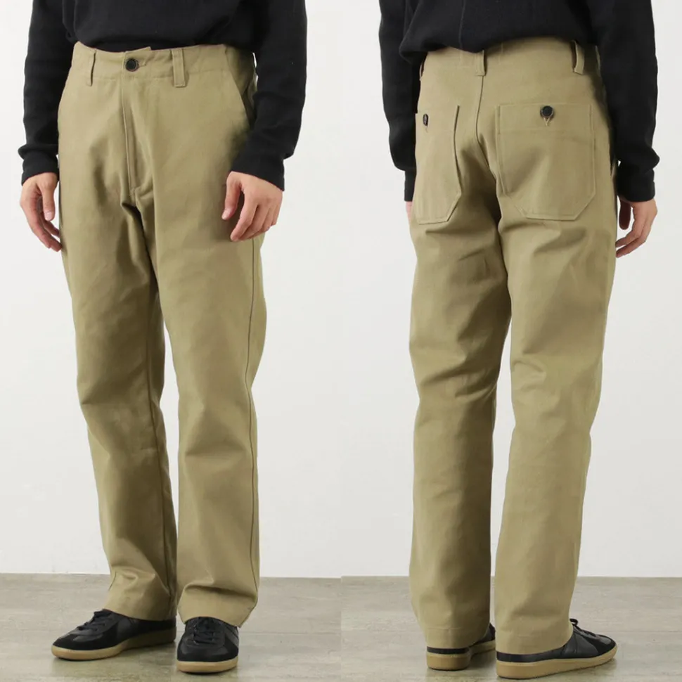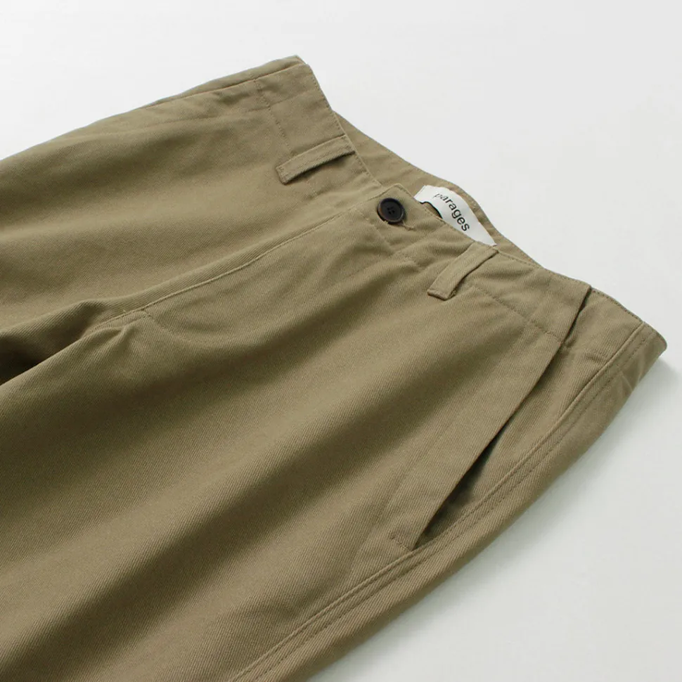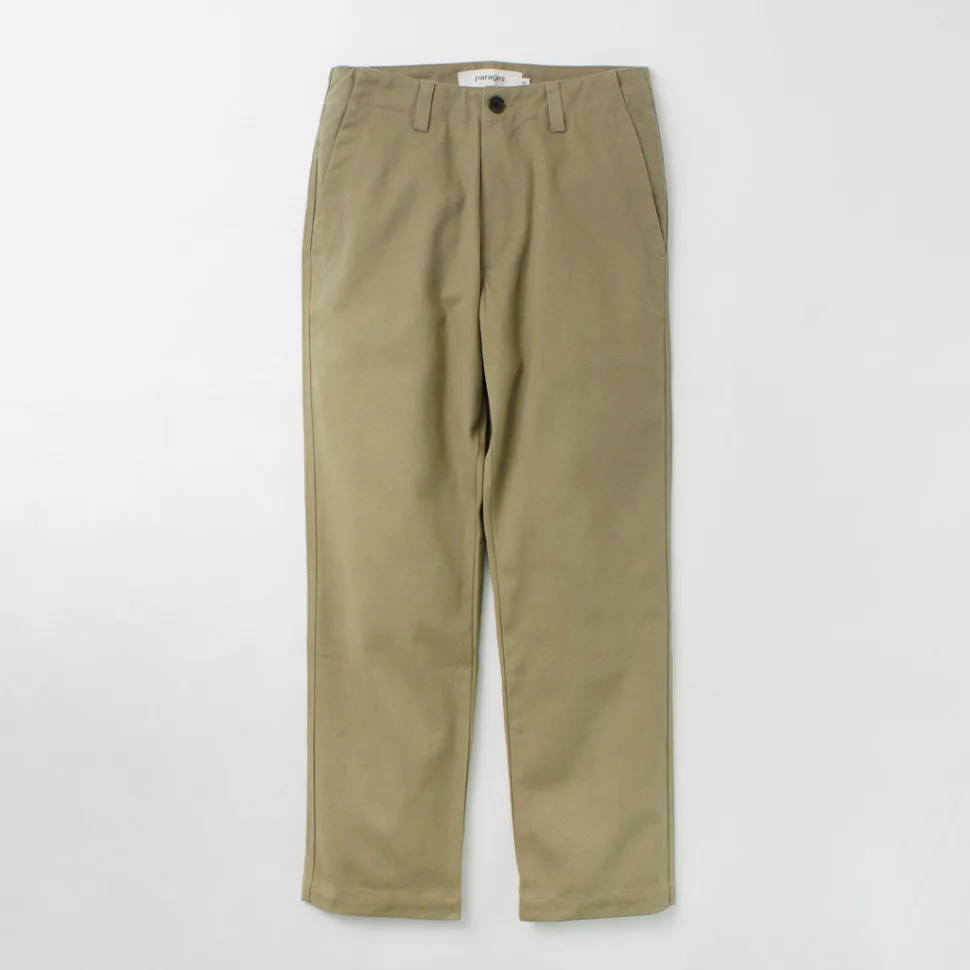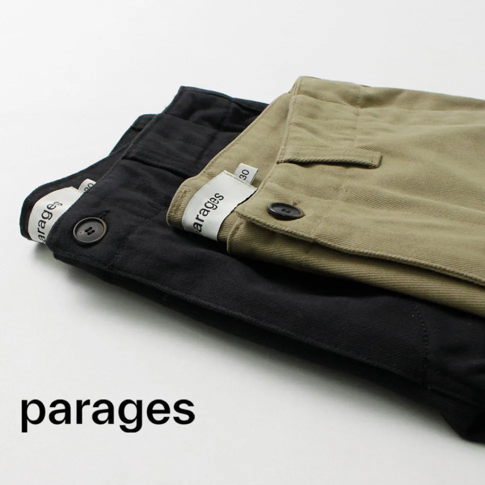 PARAGES introduces dock twill pants made of high-quality materials such as cotton fabric and horn buttons from a long-established British textile manufacturer.
