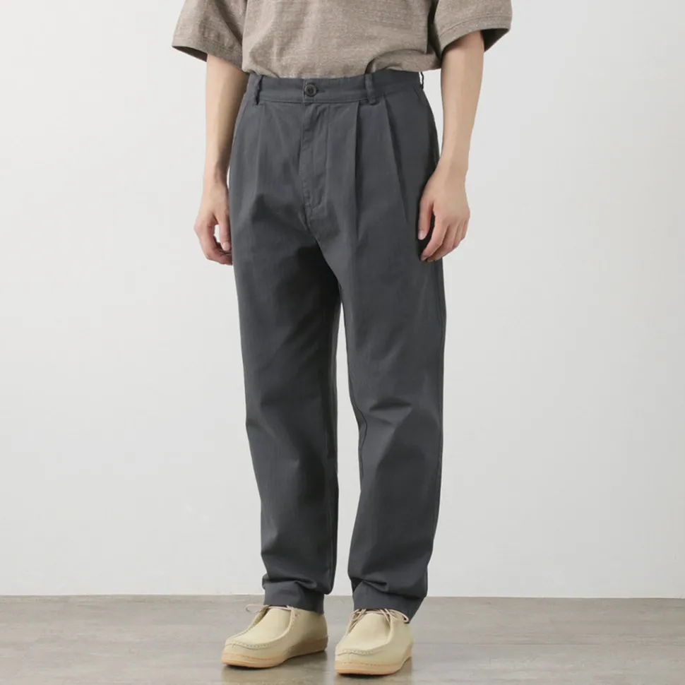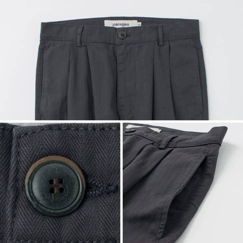 PARAGES introduces two-tuck trousers made of a luxurious herringbone fabric.