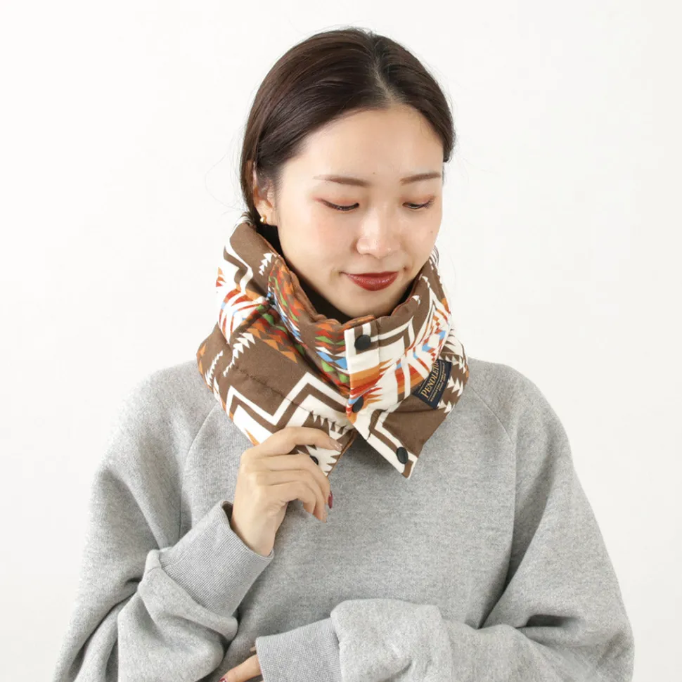 PENDLETON’s unique native pattern on this down scarf is eye-catching. The luxurious 90% down filling makes this item lightweight, warm, and comfortable to wear.