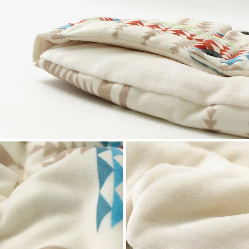 The outer fabric has a seasonal wool-like texture. It is both soft and durable, and beautifully showcases the vivid native prints.