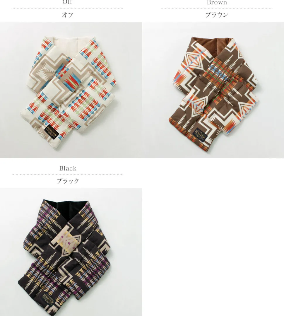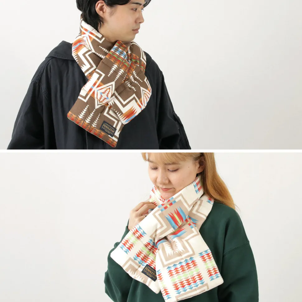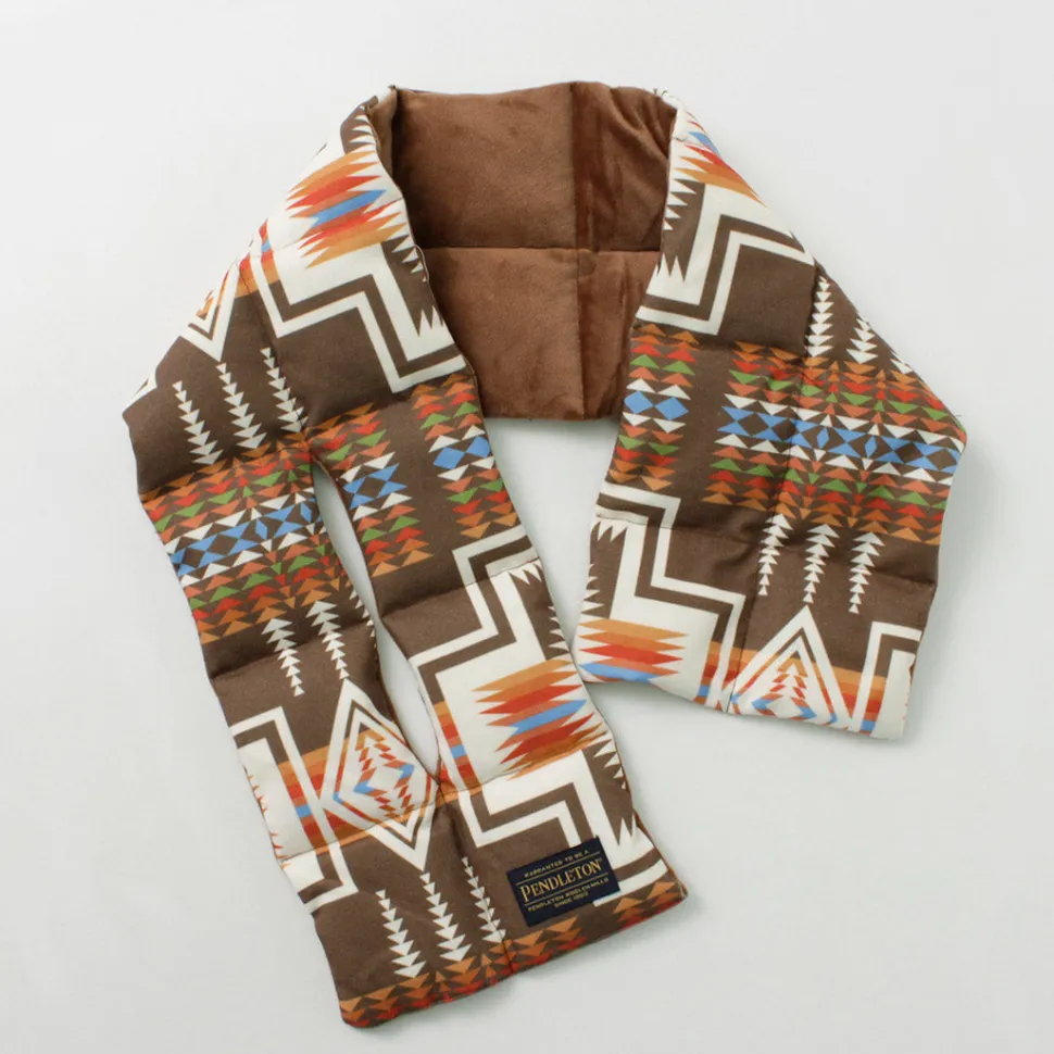 This down scarf features PENDLETON’s unique native pattern that catches the eye. The luxurious 90% down filling makes this item light and warm to wear.