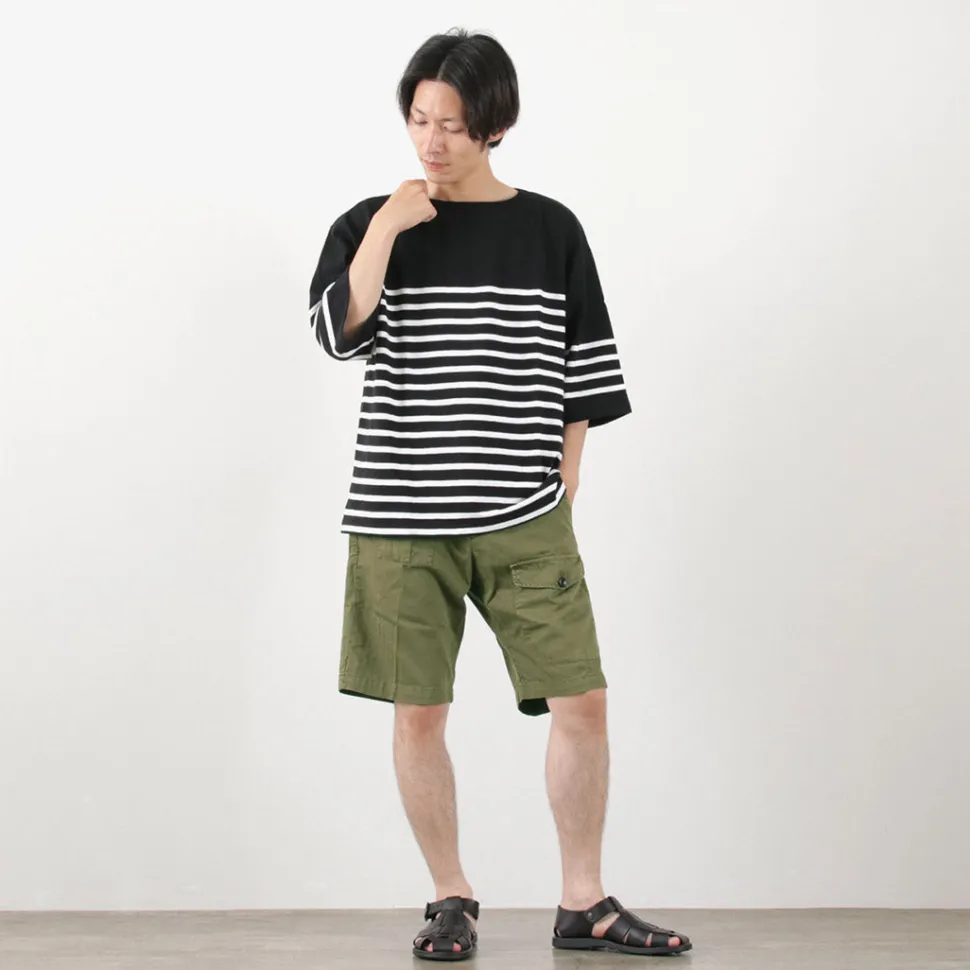 The length is a medium length, just above the knee. It is neither too long nor too short, just the right length for adult men. The wide armpits create a relaxed silhouette. It is also airy and comfortable to wear even in midsummer.