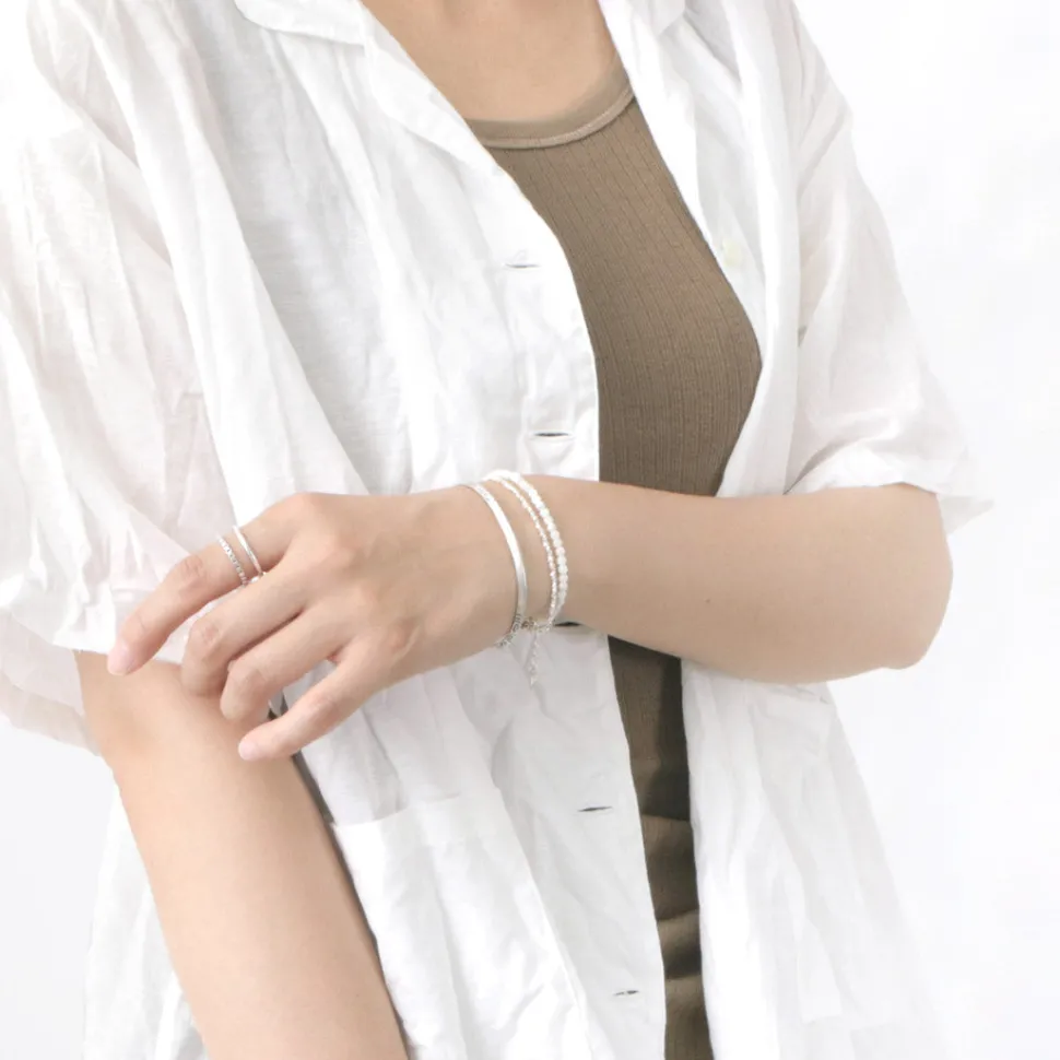 Handmade silver bangles with Karen stamped worksThe Karen silver bangles are handcrafted one by one with beautiful details. The silver is pure and a little soft, making it easy to wear, and it has a dull shine that is not flashy but has a strong presence and a unique warmth.