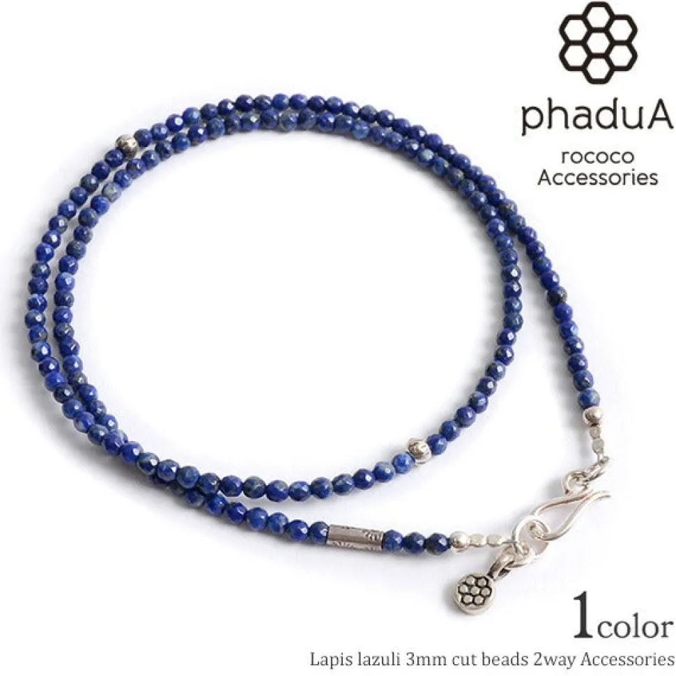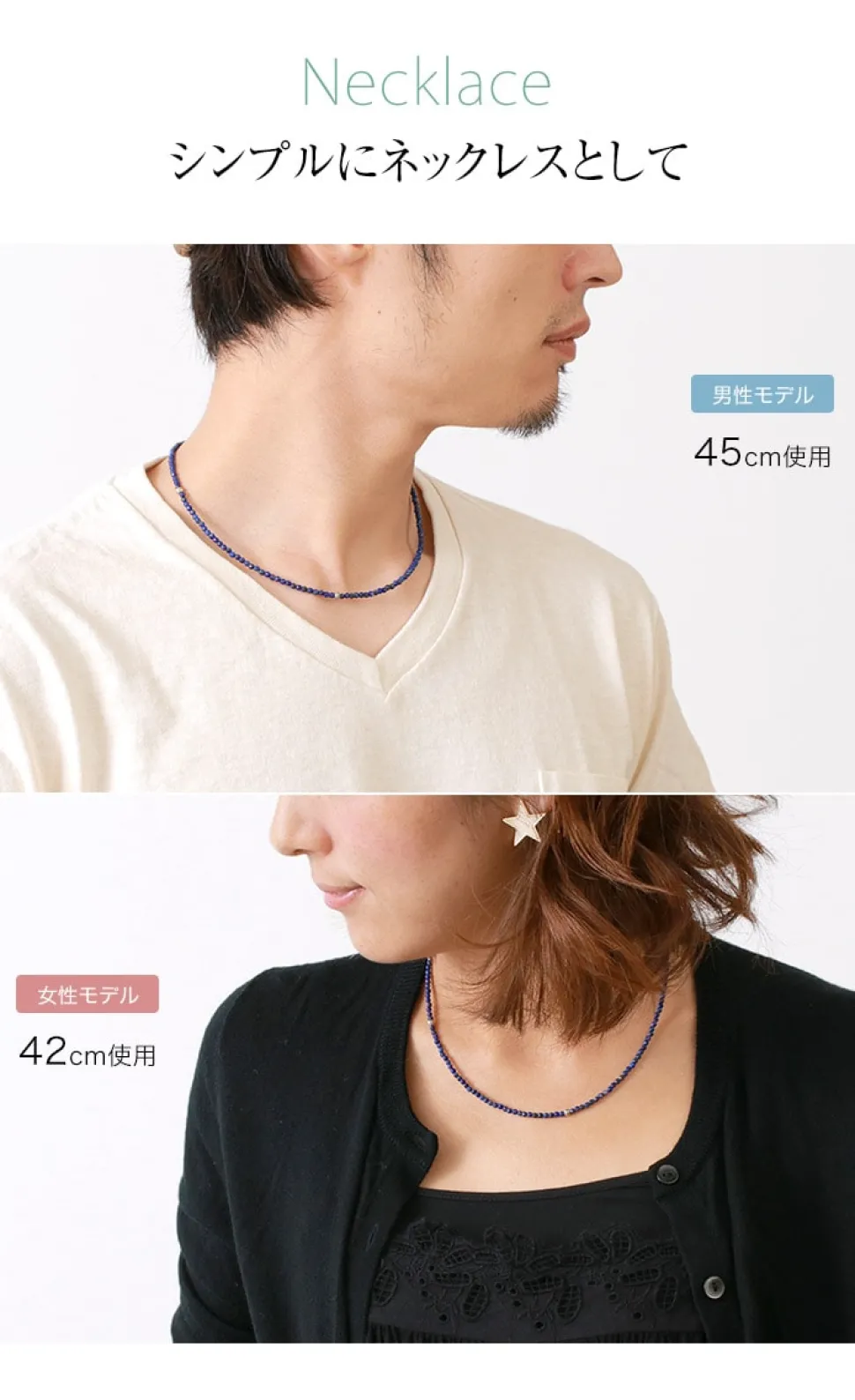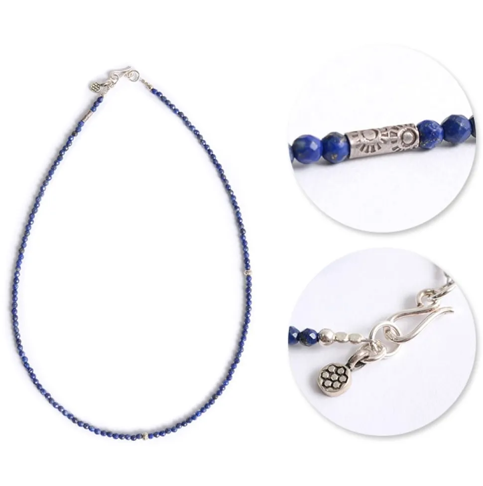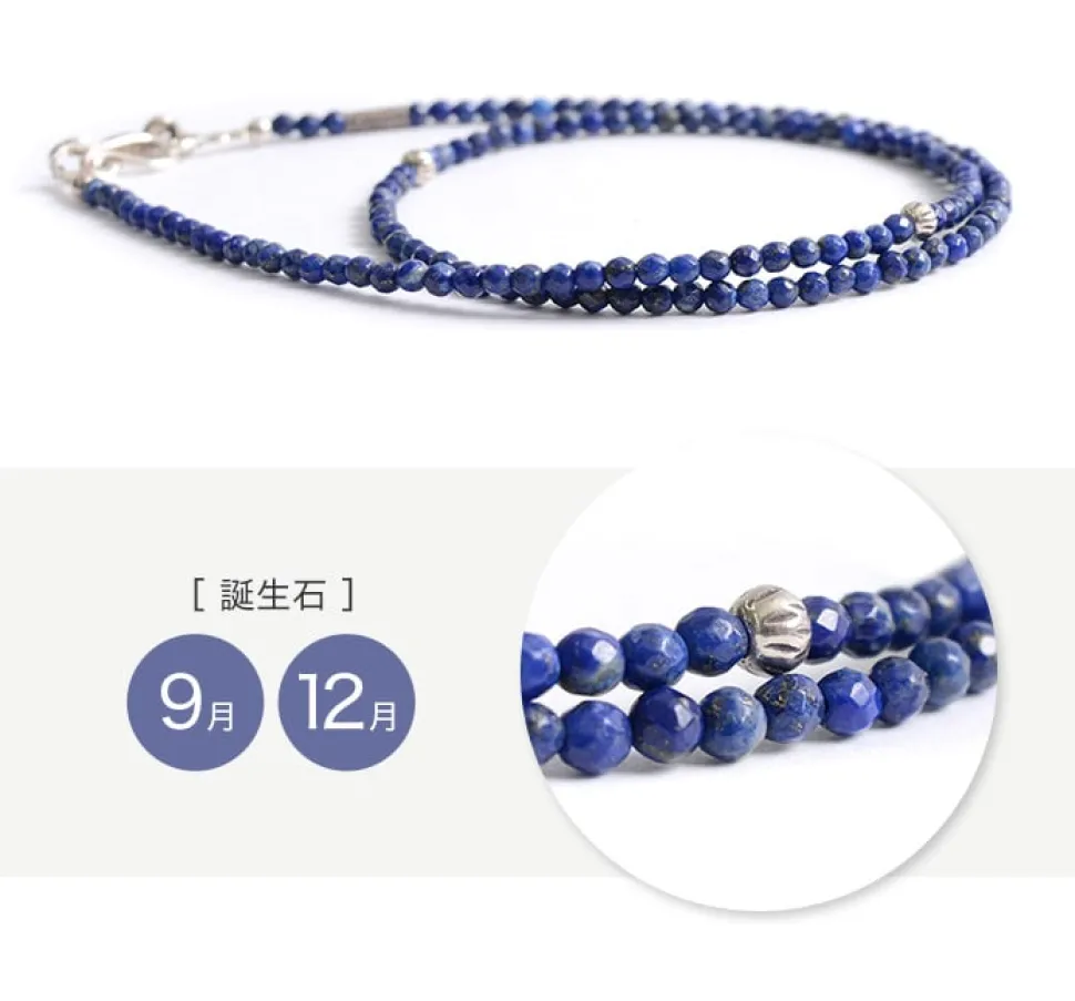 Deep Blue “Lapis” 2way AccessoryThe deep blue color of Lapis is cut on many sides to create a beautiful blue color that draws you in. This 3 mm bead is a 32-sided cut of lapis lazuli, which is hard to find in the market. Higher class lapis cut beads are so hard to find. It is said to enhance intuition and creativity, and to bring out dormant talents, making it an ideal stone for people who need planning skills or creative work. Karen silver is a high-purity silver that is handcrafted one by one by a small group of mountain people in Myanmar and northern Thailand. The purity of Karen silver is about 95-99.9%, compared to 92% for most silver jewelry. Unisex “two-way” compatibility! You can wear it as a necklace to casually decorate your chest. It is available in three sizes and is suitable for both men and women.