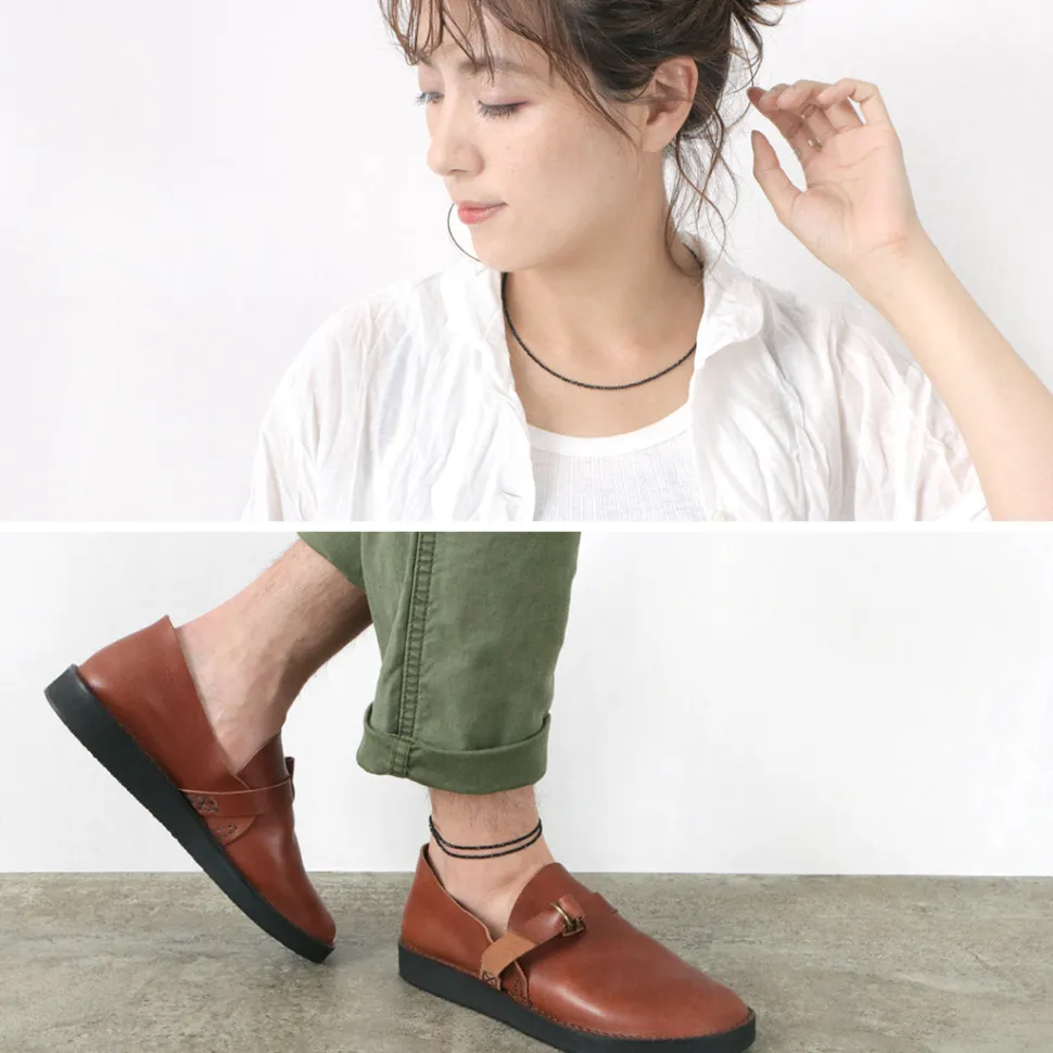 This accessory is made with onyx cut beads and Karen silver, which is handcrafted one by one. Onyx, also known as the “symbol of success,” is a natural stone that is very popular in Japan for its calm, reassuring and gentle presence. It is also used as an amulet to ward off evil spirits and bad luck. Karen silver is made by hand by a small group of mountain tribes living in Myanmar and northern Thailand. The purity of Karen silver is about 95-99.9%, compared to about 92% for ordinary silver jewelry. Length: 42cm, 45cm, 50cm Part Size: Beads 2mm wide, Joint (clasp part) 5mm wide at maximum Country of Origin: MADE IN THILAND Material: Black Onyx (natural stone), Karen Silver, Silver 925