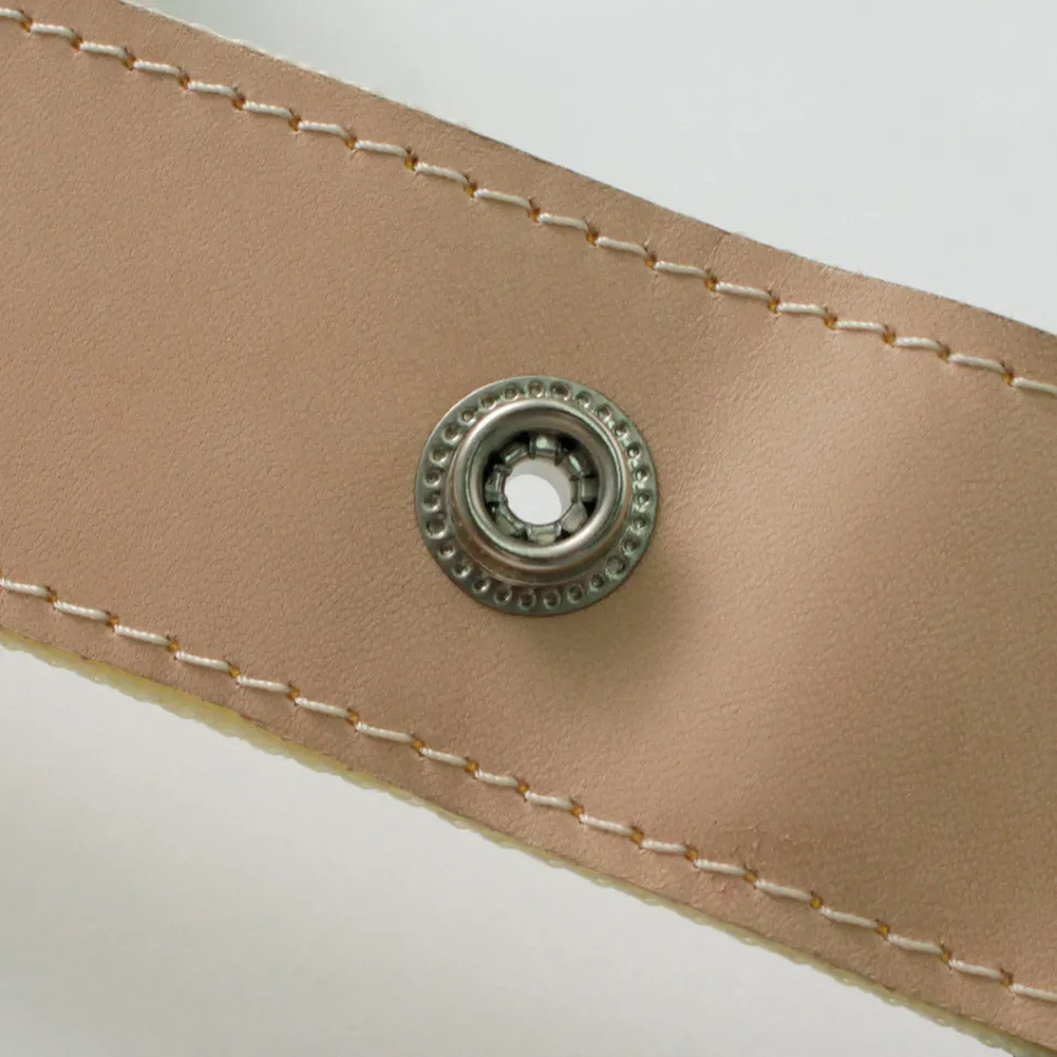 The handle features unlined natural leather. The natural hue of the leather, with individual variations in texture and surface, allows you to enjoy its unique aging process. The handle also has a branded burn mark, offering a distinct charm different from prints. The wide handle ensures comfortable carrying, even with heavy loads, without digging into your shoulder.