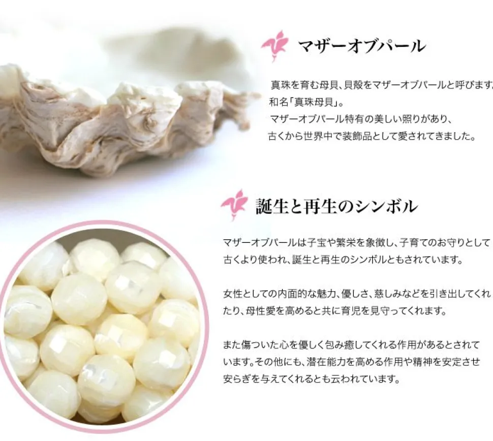 Mother-of-pearl Mother-of-pearl is the mother of pearl, the shell from which pearls grow. The mother-of-pearl symbolises fertility and prosperity, and has long been used as a child-rearing talisman and a symbol of birth and rebirth. Karen handcrafted brass beads Because of the high price of silver, brass is also used. Excellent balance between two different bead sizes
