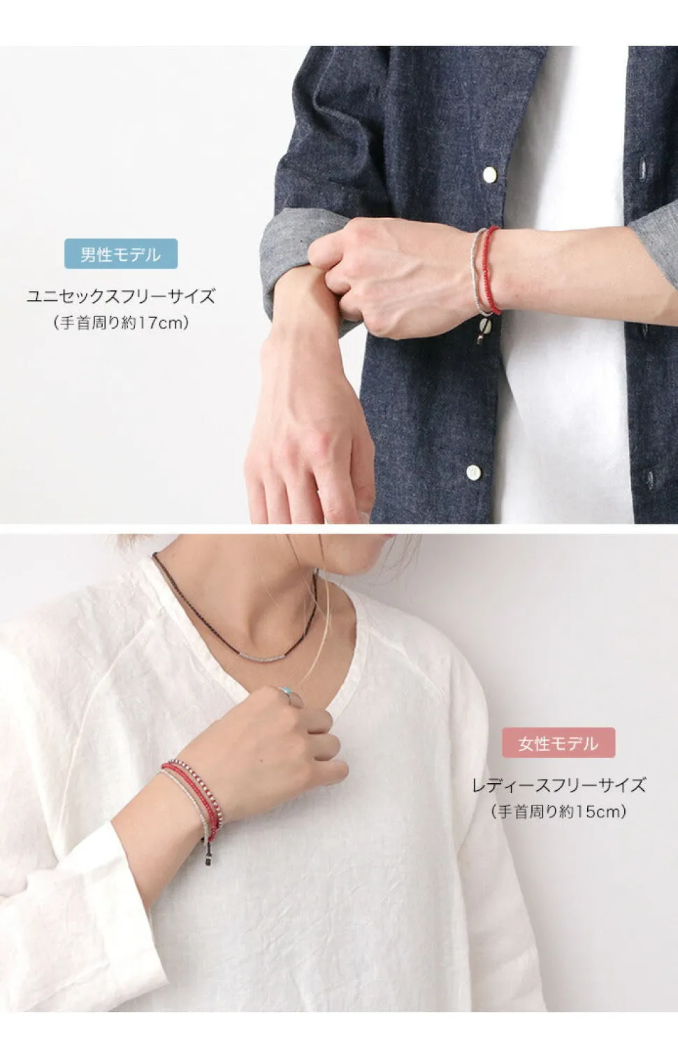 A combination of different materials adorns this two-strand bracelet, which combines eye-catching white heart beads with warm Karen silver. The bracelet is water-resistant, so you can enjoy summer activities with it on! This item is sure to enhance your summer style as a coordinating accent. You can leave it on all day! You can wear it in the shower, bath, pool, or ocean without getting sticky. It is water resistant and will not fade or shift colors due to sweat or rain, and is also used as a material for surfers’ accessories. Available in two sizes for unisex enjoyment. It is also a perfect item for pair accessories and gifts. It can also be worn in layers depending on your mood, purpose, or location. It goes well with other cord and bead accessories.