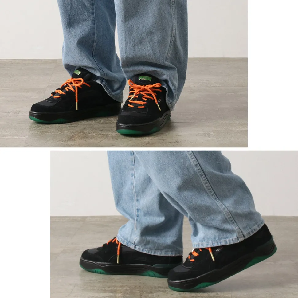 From the PUMAxCARROTS collection comes the PUMA-180 sneaker, featuring a voluminous silhouette inspired by the skateboarding sneaker culture of the 90s.