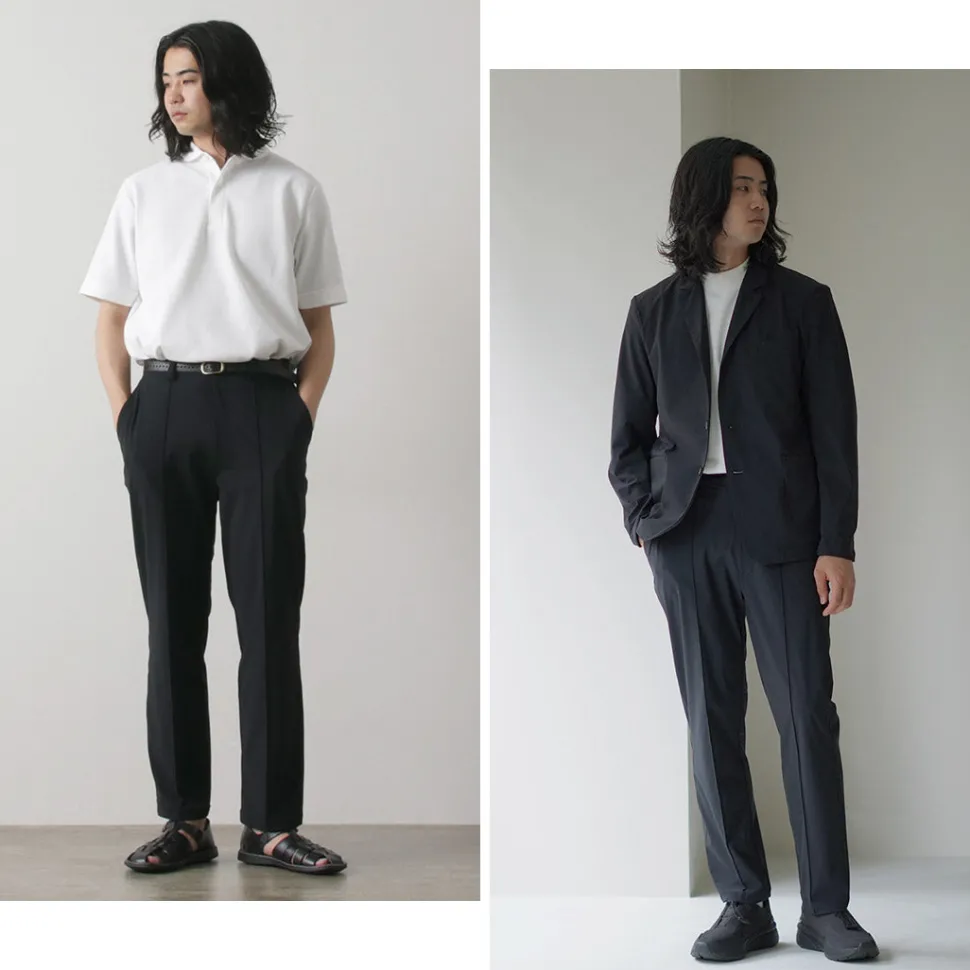 Refined minimalism and a smart design suitable for both work and leisure. It looks sleek like slacks but feels as comfortable as sweatpants, without any tightness.