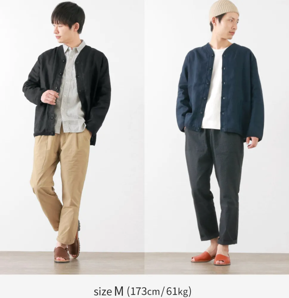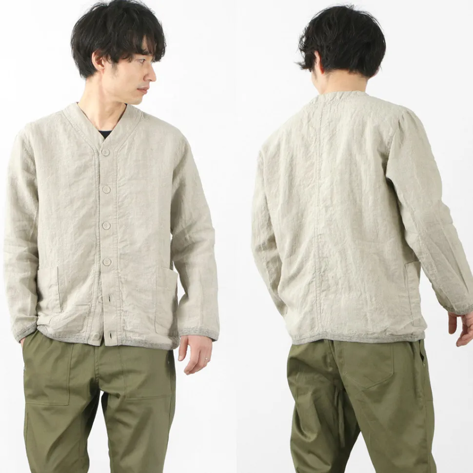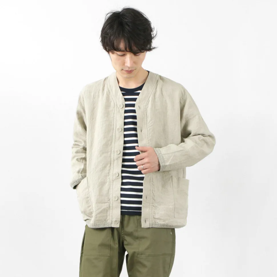 Cut and sewn shirt cardigan made of high quality French linen. It is slightly loose in size, with a bouncy, three-dimensional silhouette unique to the material and a cool, relaxed and effortless fit.