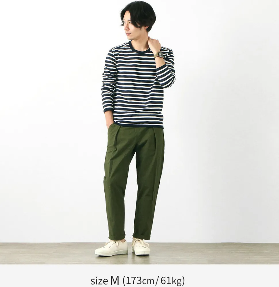 The neckline, cuffs, and hem, which are prone to deterioration over long-term use, are reinforced with wide piping for durability. The T-shirt inherits the materials, details, and pattern work, delivering a quality that exceeds its price.