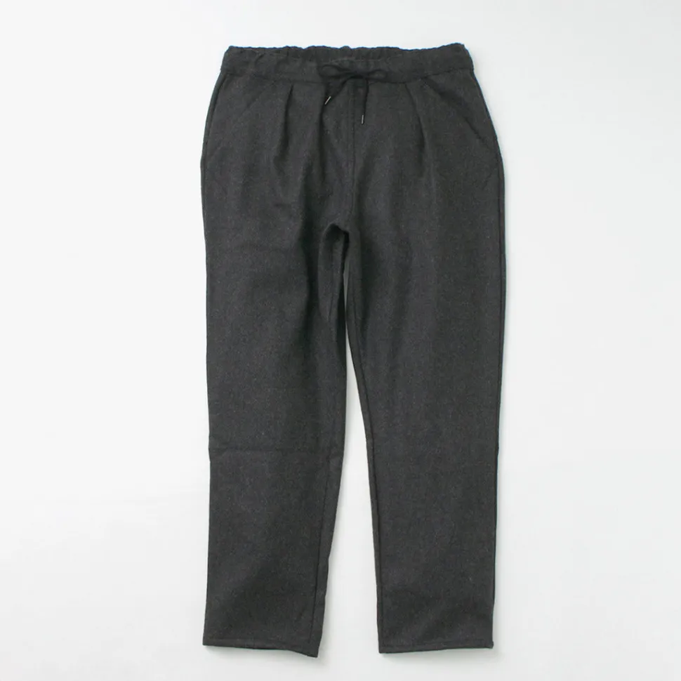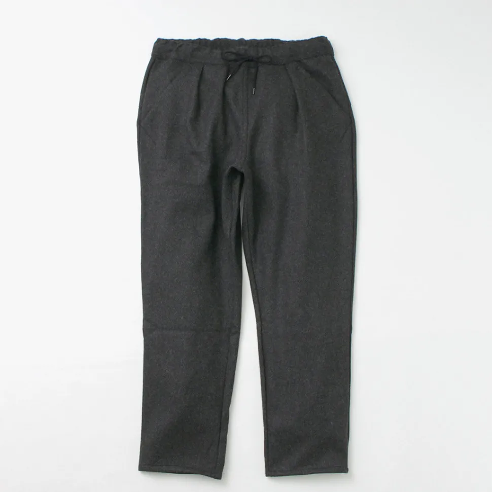 Introducing wool flannel tuck pants blended with cashmere, where premium materials shine through a relaxed design from RE.