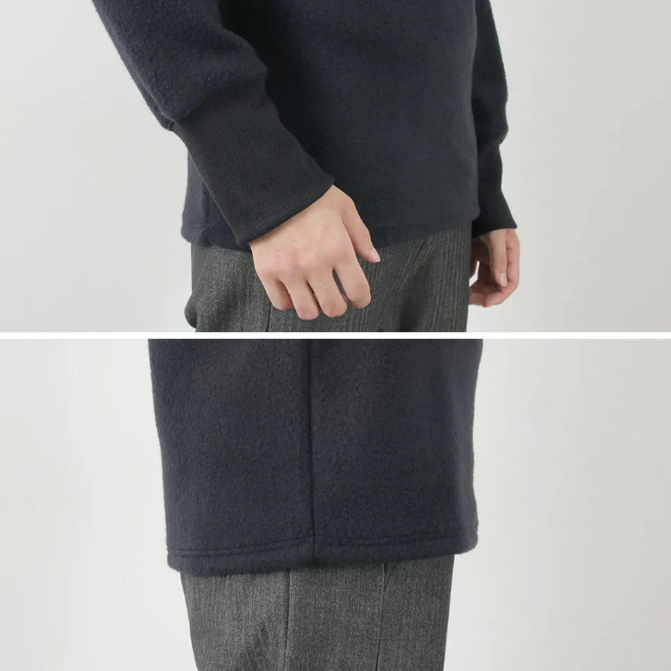 This garment uses a pile fabric blend of acrylic, polyester, and wool, combining warmth with durability. The outer side is brushed for added warmth, while the inner fabric offers a smooth feel, free from wool’s typical scratchiness. Enjoy a light yet cozy fit with just the right thickness.