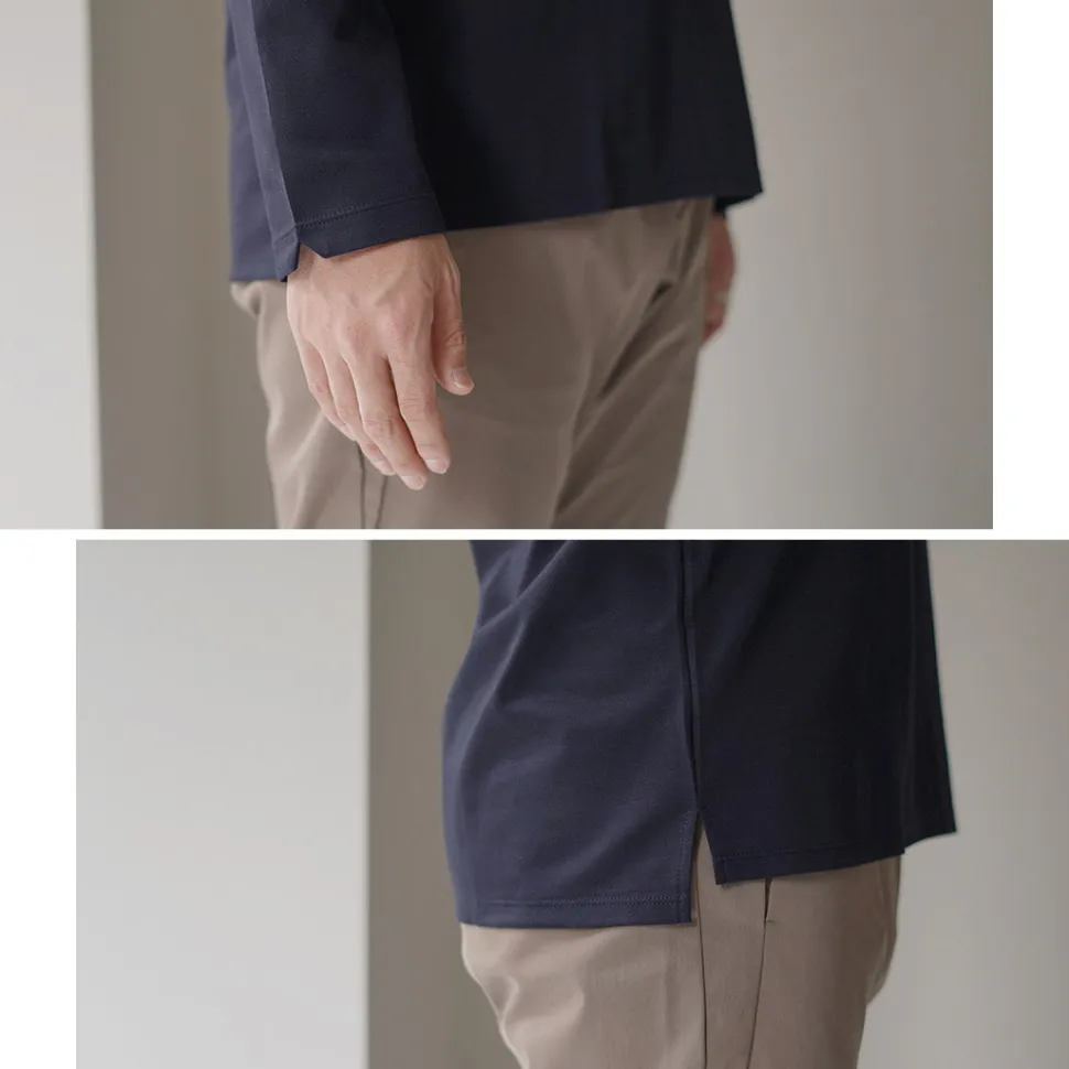 Although the appearance is smart and streamlined, the shirt is designed with a slightly relaxed fit for comfort. The back is slightly longer to provide coverage for the hip silhouette.
