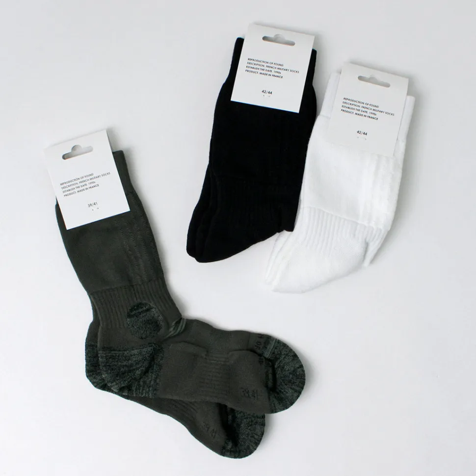 REPRODUCTION OF FOUND introduces French military socks that have been adopted by the French military from the 1990s to the present.